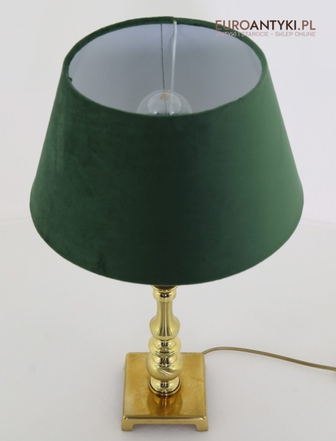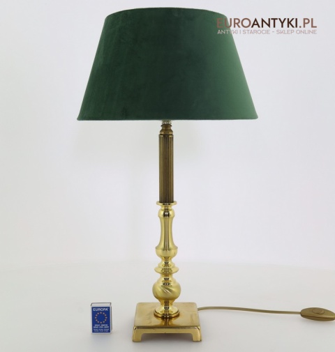 Dodaj do swojego wnętrza odrobinę stylowego szyku dzięki tej wyjątkowej mosiężnej lampie stołowej z lat 70. Jej klasyczna forma, pełna finezyjnych detali, harmonijnie łączy się z głęboką zielenią aksamitnego abażuru, tworząc elegancki i ponadczasowy efekt.