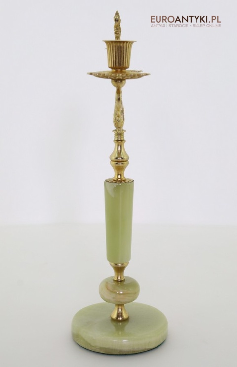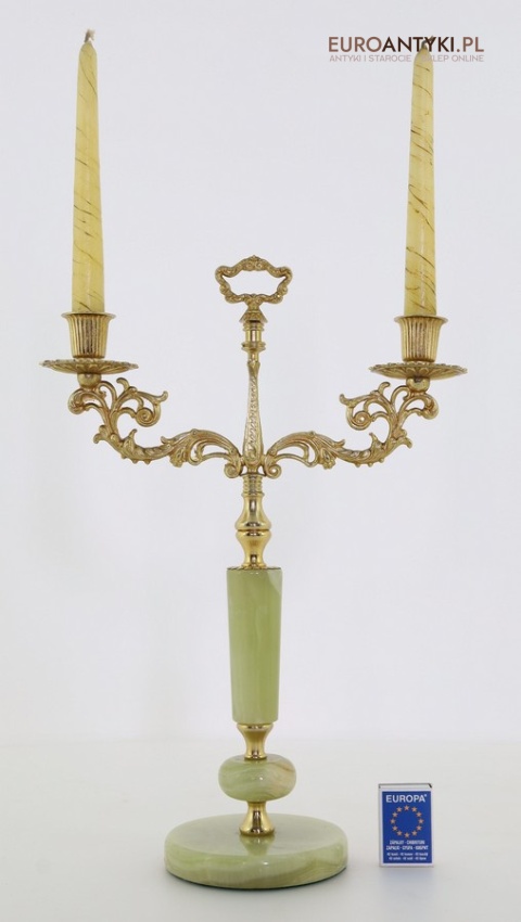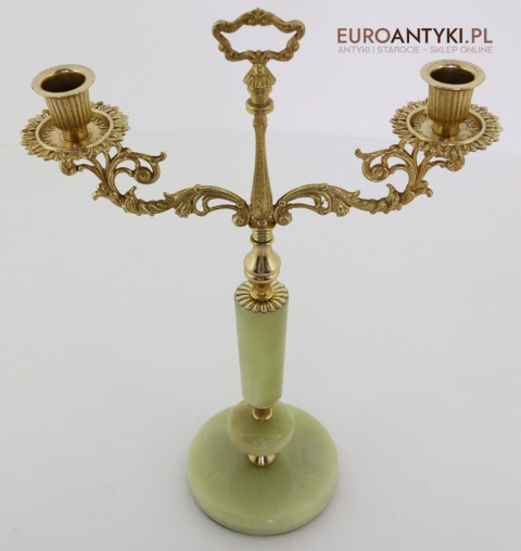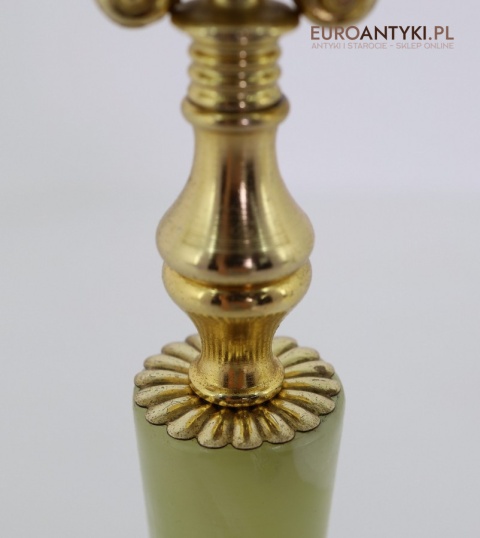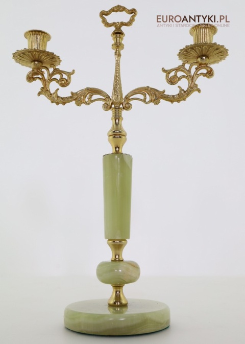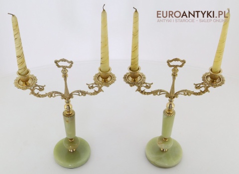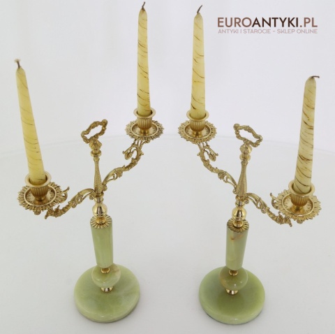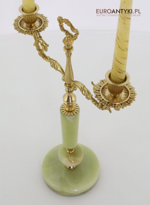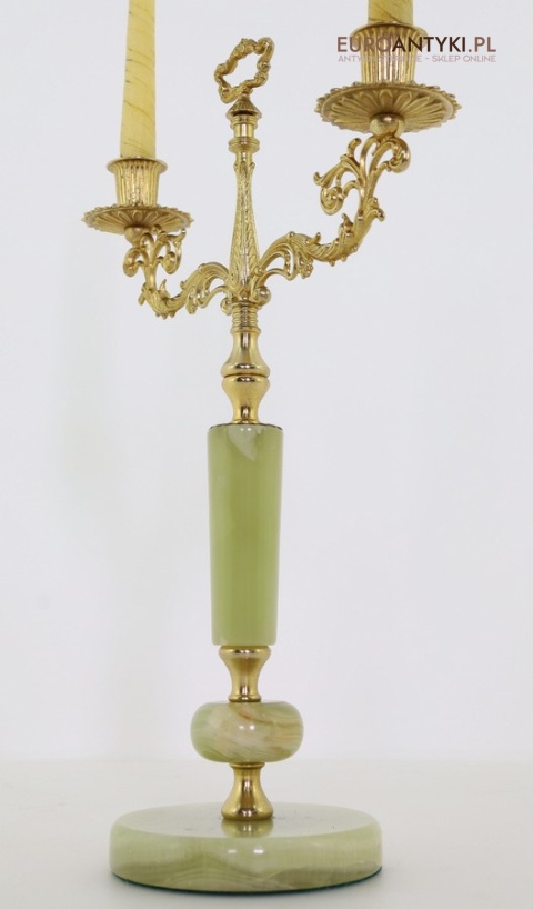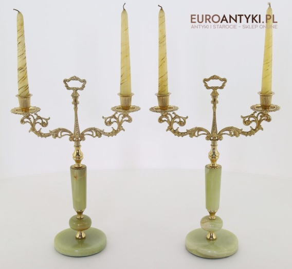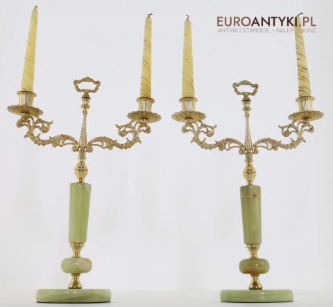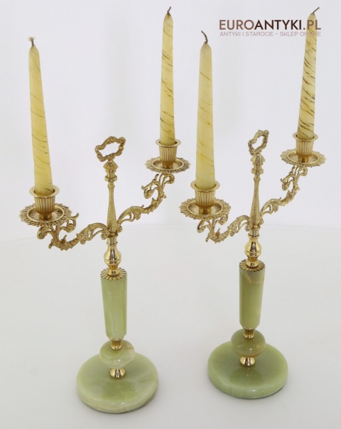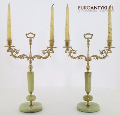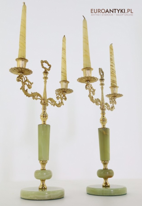 Przedstawiamy parę antycznych świeczników w stylu Ludwika XV, które zachwycają swoim klasycznym designem oraz wysokiej jakości materiałami. Ich podstawa została wykonana z naturalnego onyksu, a bogato zdobione ramiona i detale są z mosiądzu, co podkreśla ich pałacowy charakter. To niezwykłe przedmioty, które dodadzą wnętrzu elegancji i historycznego uroku. Świeczniki pochodzą z drugiej połowy XX wieku. Wysyłka bez świeczek!