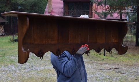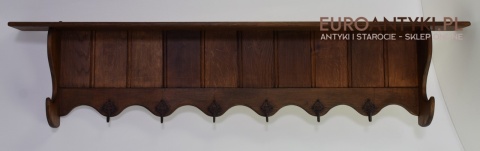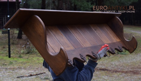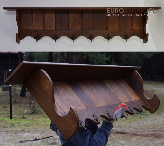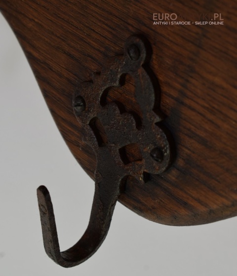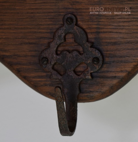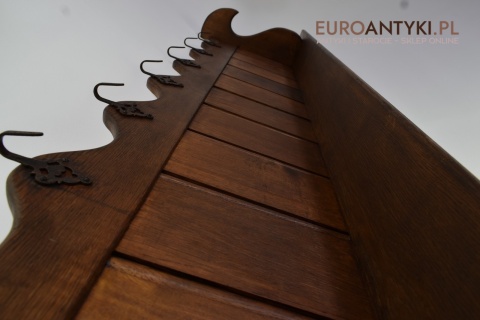 • Materiał: Wykonany z litego dębu, co gwarantuje trwałość i wytrzymałość na lata. Metalowe haki antyczne
