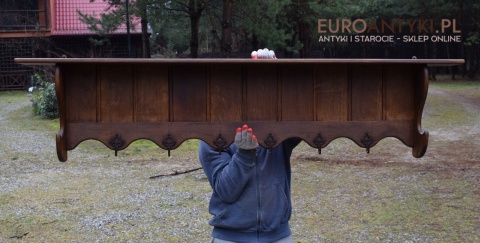 Oferujemy wyjątkowy rustykalny wieszak wykonany z litego dębu, który jest doskonałym dodatkiem do każdej góralskiej chaty, wiejskiego domu czy klasycznej aranżacji o stylowym charakterze. Ten zabytkowy przedmiot został sprowadzony z Francji i jest w bardzo dobrym stanie, co świadczy o jego wyjątkowości i wartości.