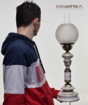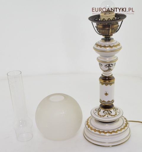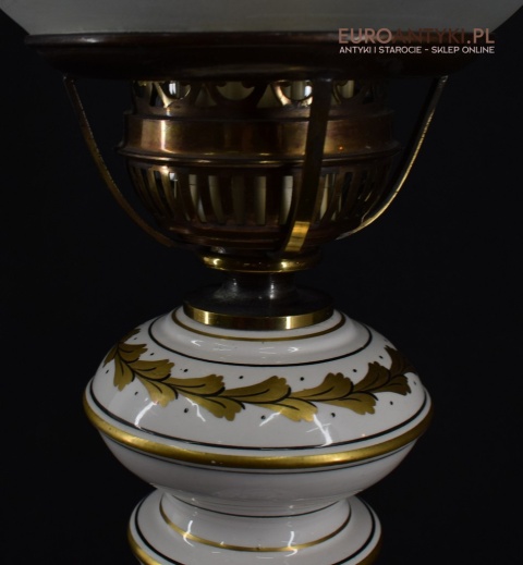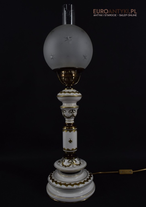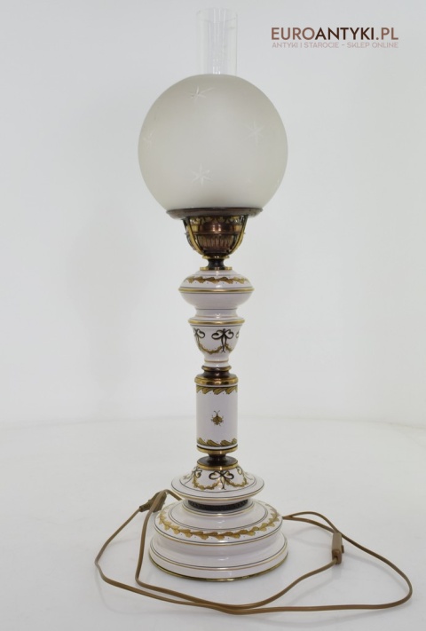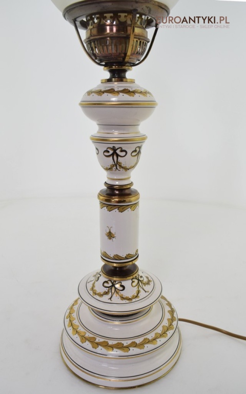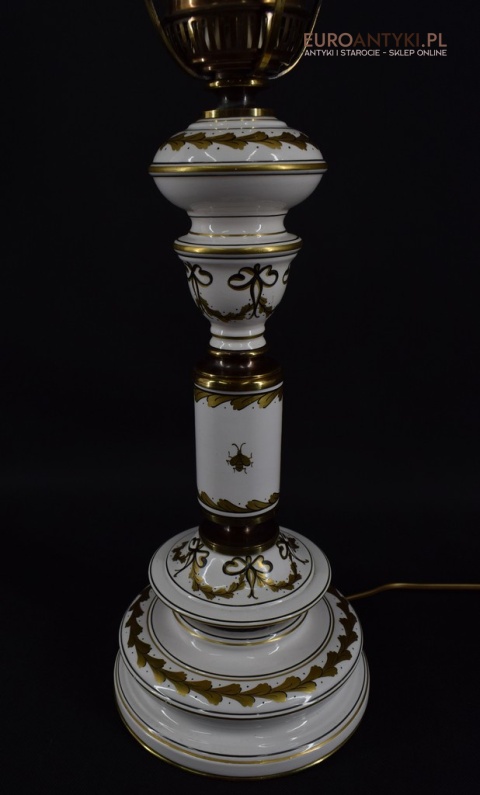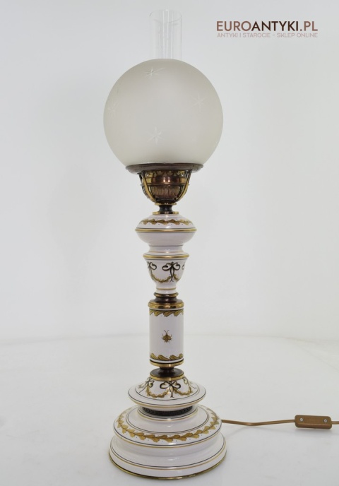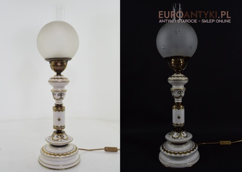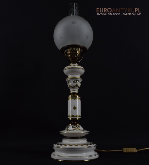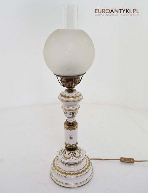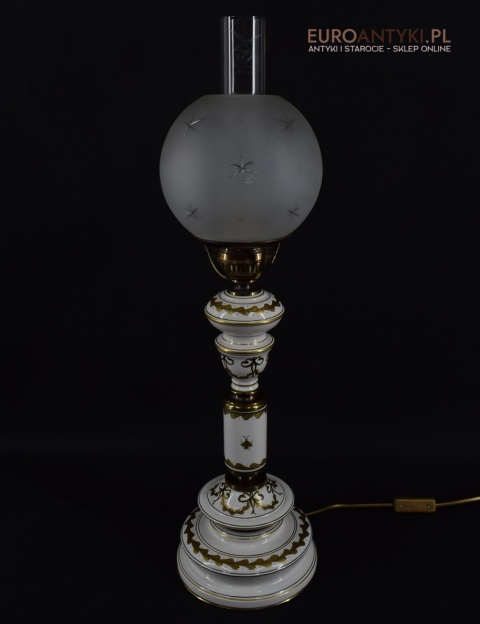 XXL! Antyczna lampa kolumna porcelanowa na stolik. Zabytkowe oświetlenie pałacowe.