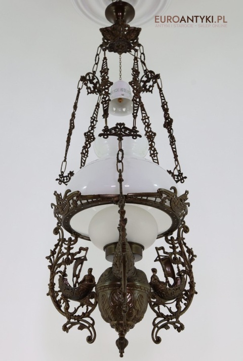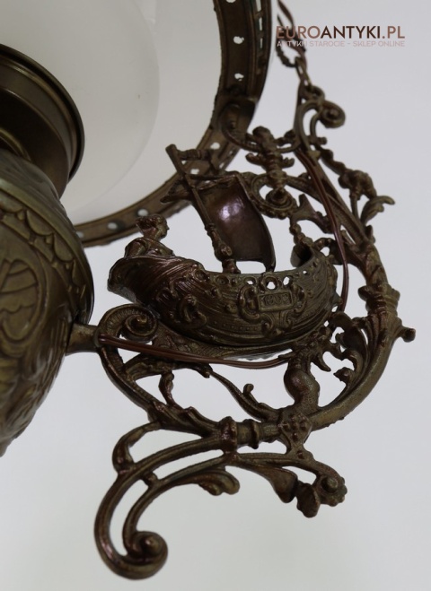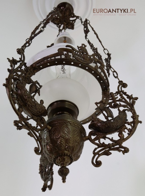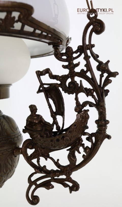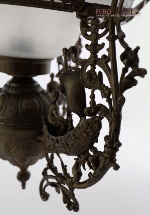 Żyrandol ten reprezentuje neobarok, styl nawiązujący do monumentalnych i bogato dekorowanych wnętrz epoki baroku. Charakteryzuje się ornamentyką roślinną, kunsztownymi zdobieniami oraz symetrycznymi, eleganckimi formami. Żyrandole w tym stylu często zdobiły pałace, rezydencje i prestiżowe wnętrza, nadając im wyjątkowego splendoru i podkreślając status ich właścicieli.