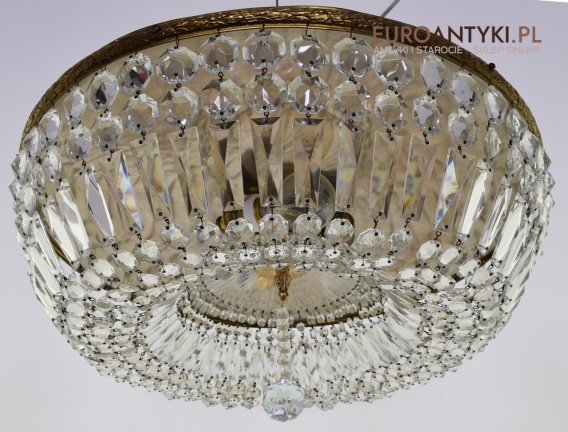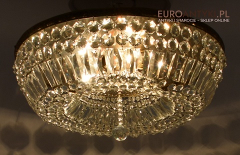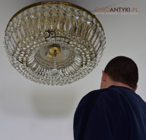 XXL! DUŻY kryształowy plafon z lat 1940. Antyczna plafoniera.