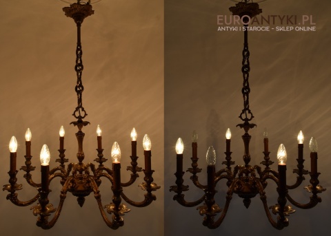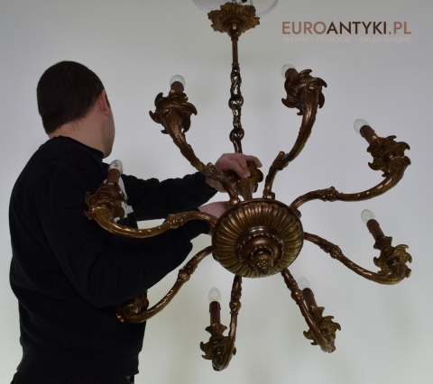 XXL! Duży mosiężny żyrandol do salonu. Lampy antyczne unikatowe.