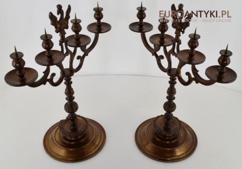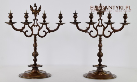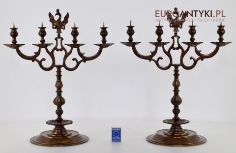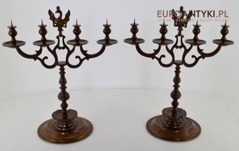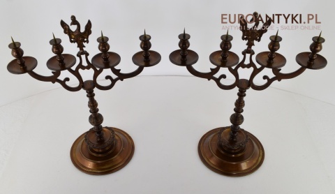 XXL! Polskie Zabytkowe Świeczniki - Księstwo Warszawskie - Antyki Patriotyczne