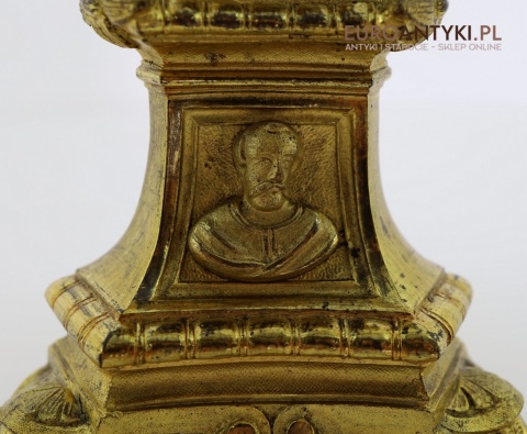 Podstawa: reliefy z wizerunkami świętych – głęboko rzeźbione, z pięknymi detalami