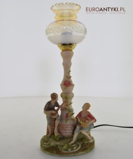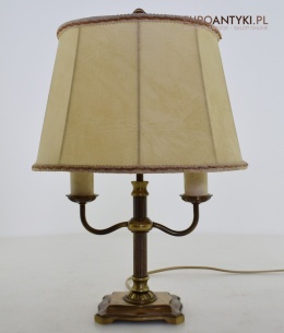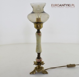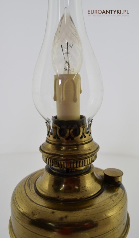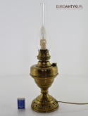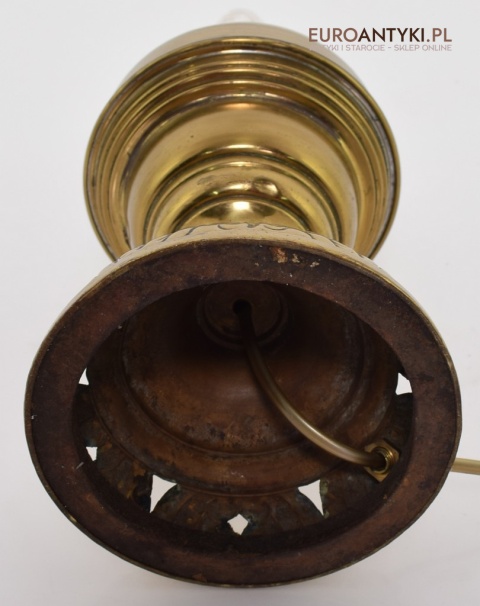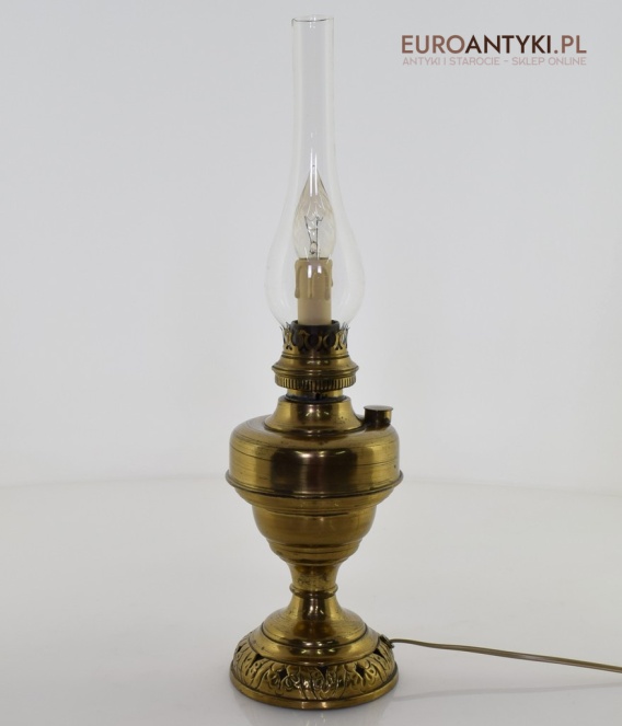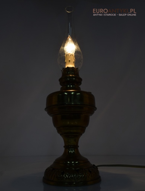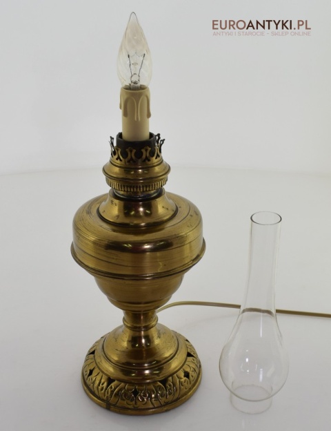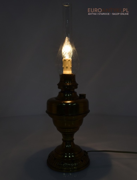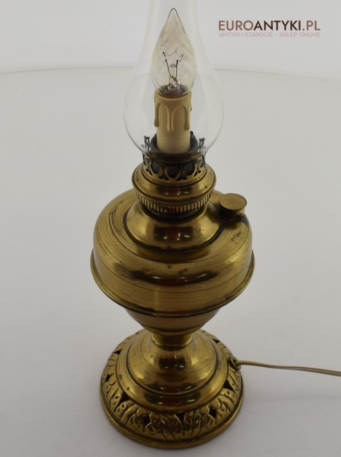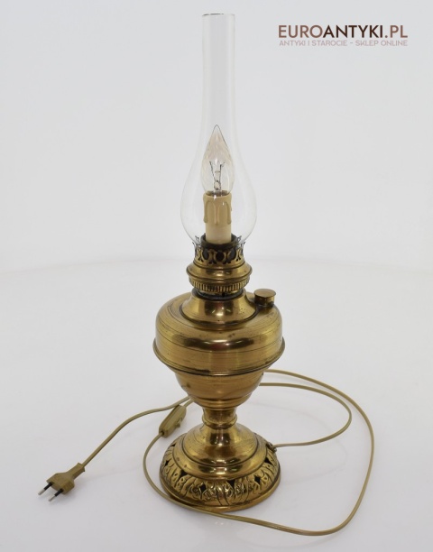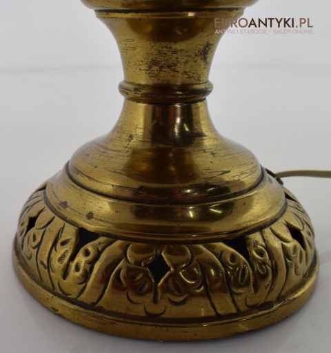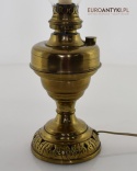 Zabytkowa stołowa mosiężna lampa naftowa zelektryfikowana.