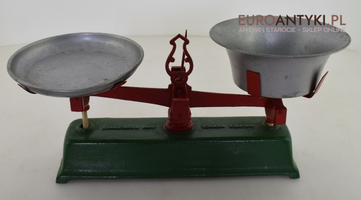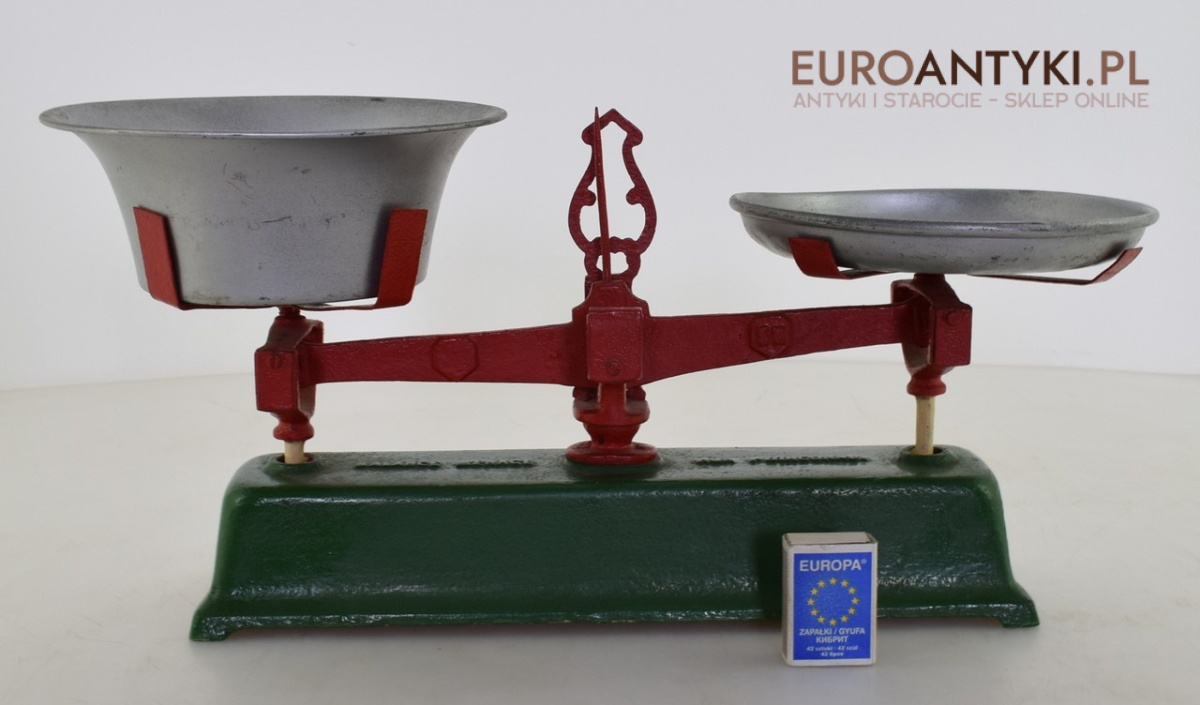 Sprowadzona z Austrii. Pochodzi z przełomu 19/20 wieku. Wykonana z metalu. Mechanizm wagi jest sprawny.