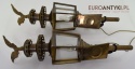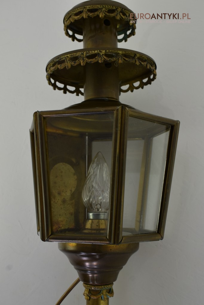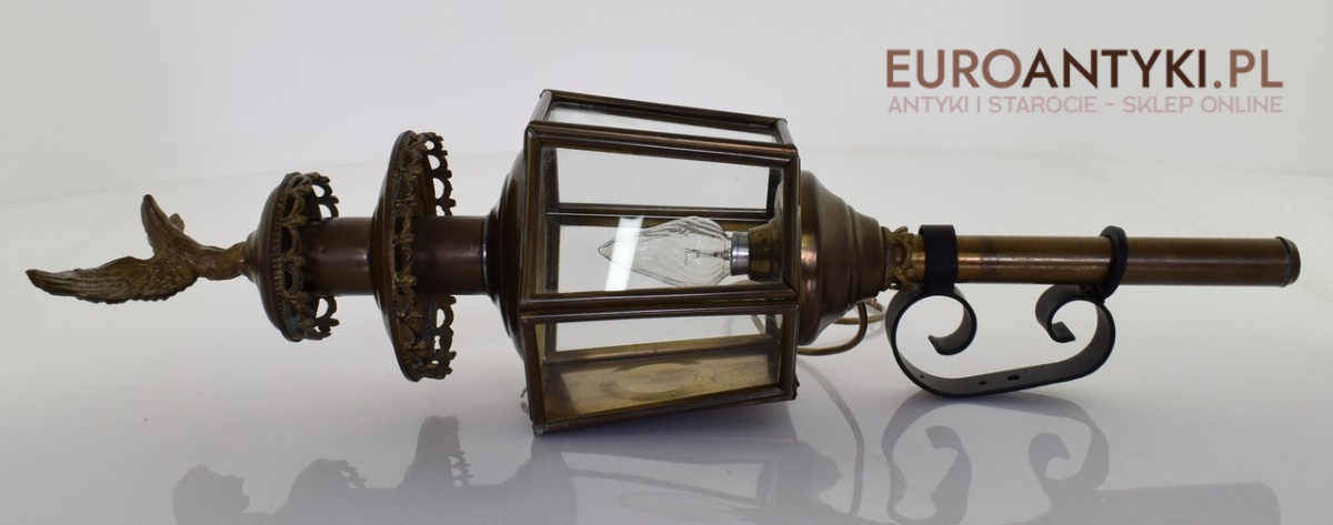 Wykonane z mosiądzu. Ręcznie lutowane. Szklane szybki. Czarny uchwyt wykonany z masywnego metalu.W uchwycie są 2 otwory, jeden na montaż a drugi na kabel do ściany.