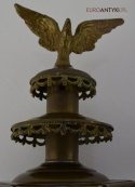 Całość bez uszkodzeń, kompletna. Elektryka sprawna. Standardowe gniazda typu E14 o maksymalnej mocy 80 watt. Wszystkie lampy wysyłamy bez żarówek. W dzisiejszych czasach można kupić żarówki LEDowe o różnej barwie światła, o różnym natężeniu i o różnym kształcie. Więc tak na prawdę malutka żarówka może być potężnej mocy i nie pobierać wielu wattów, przez co nie spali lub nie przegrzewa kabli elektrycznych.