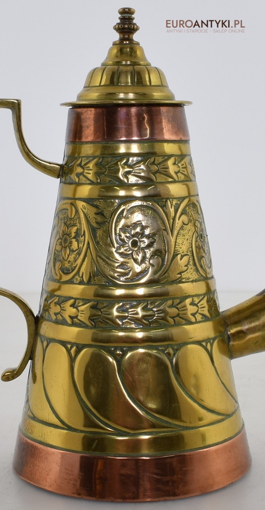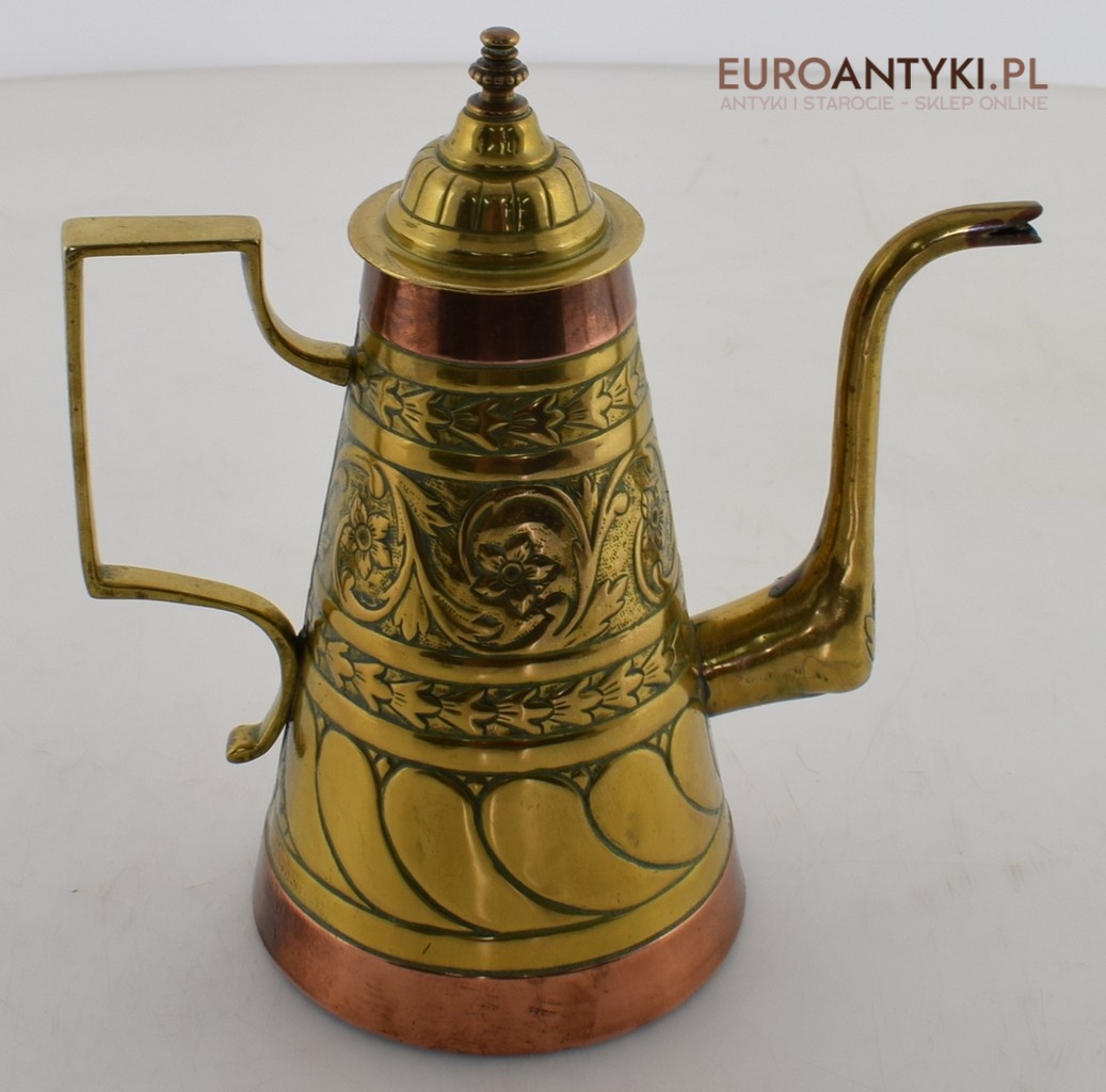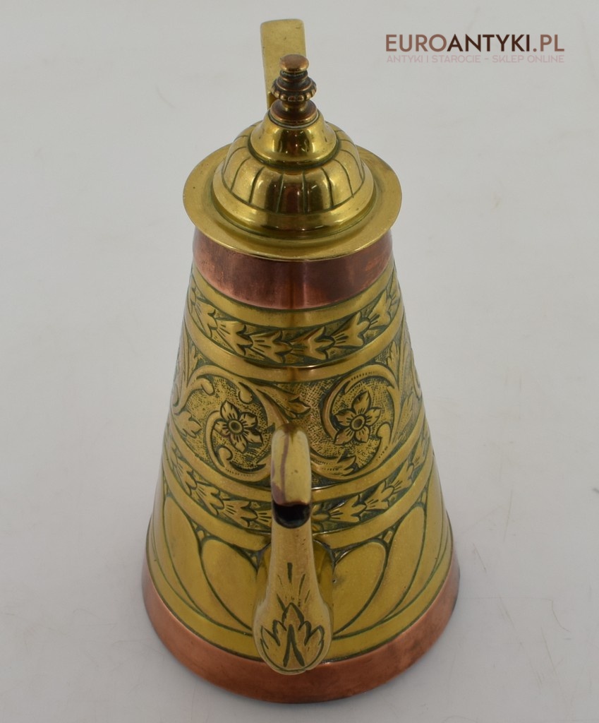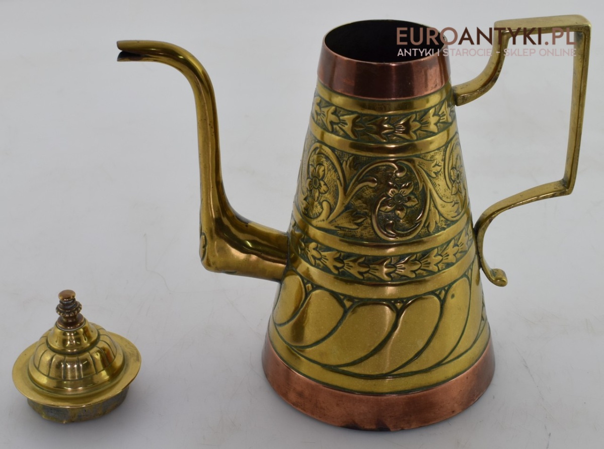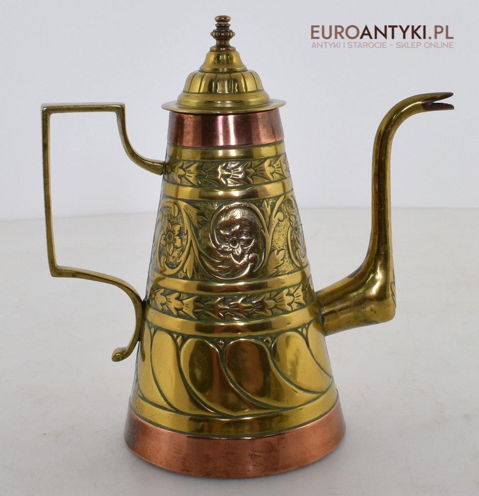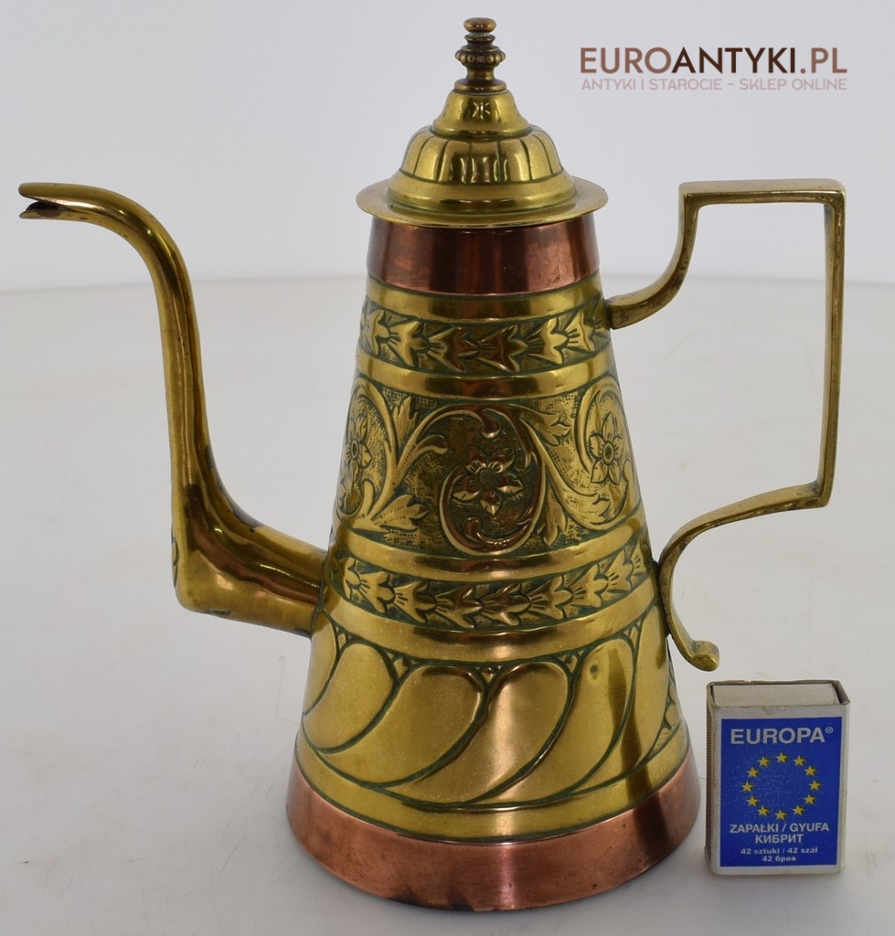 Zabytkowy czajnik orientalny z mosiądzu i miedzi. Antyki starocie.