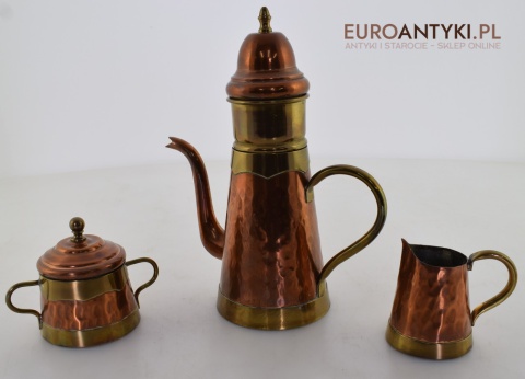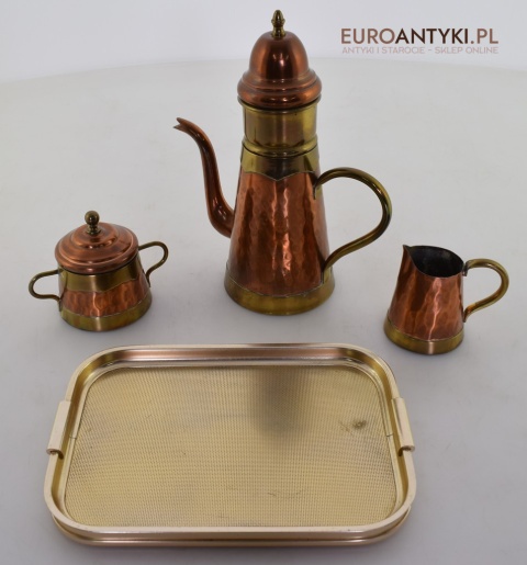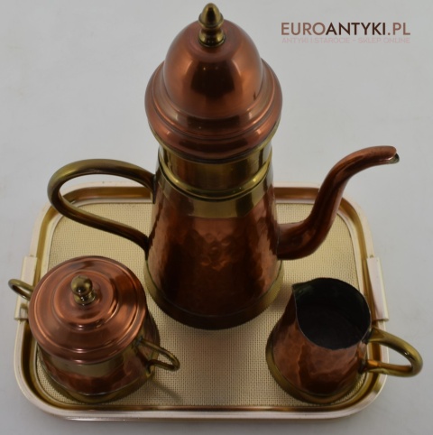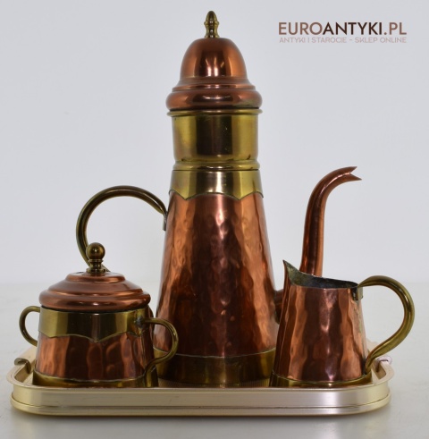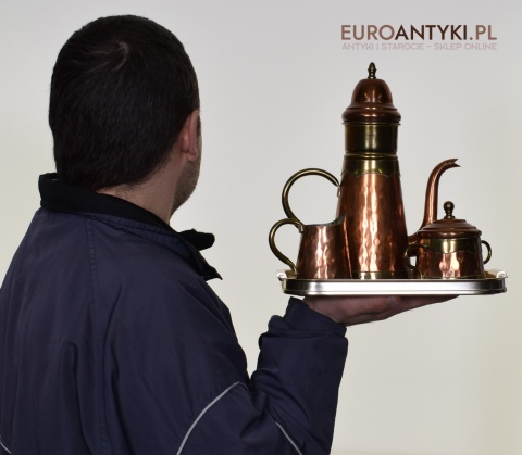 Zabytkowy miedziany zestaw do parzenia herbaty. Sklep z antykami.