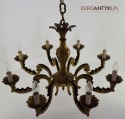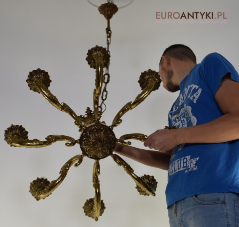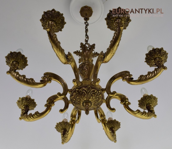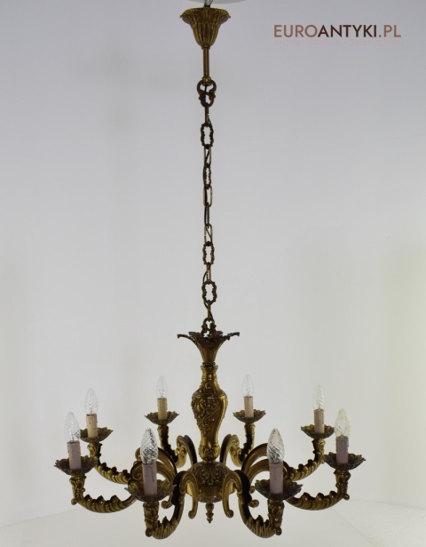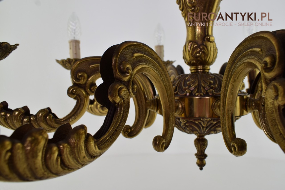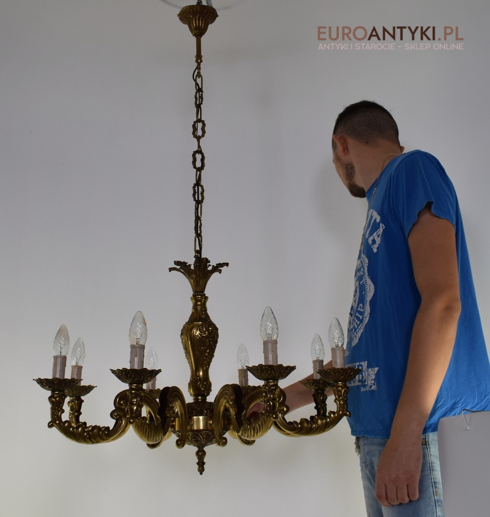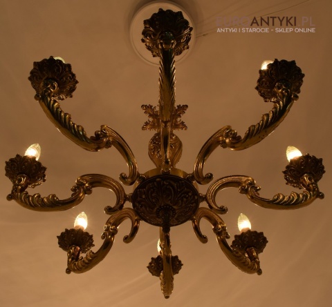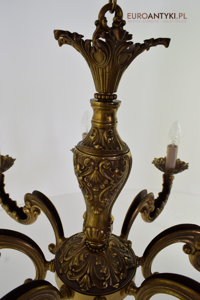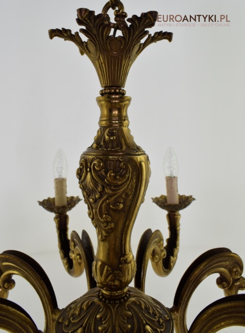 Zabytkowy, rasowy żyrandol barokowy mosiężny z lat 1930. Lampy antyki.