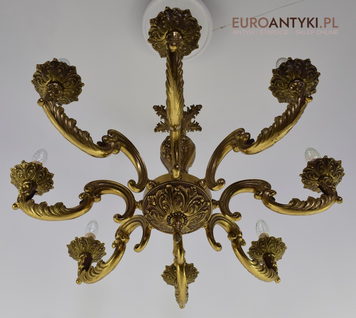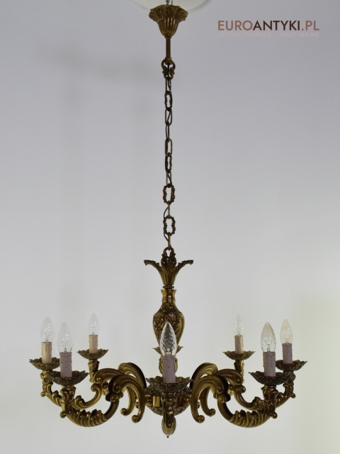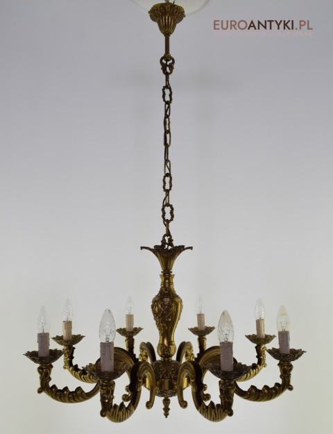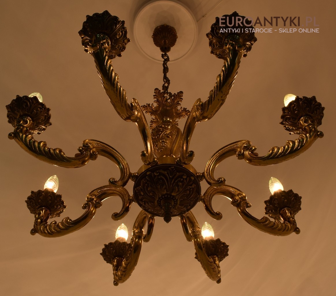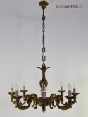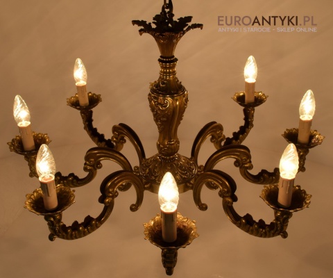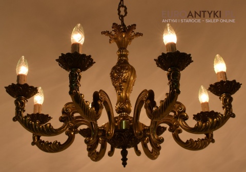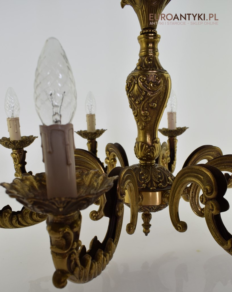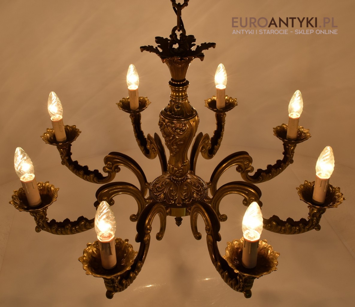 Zabytkowy, rasowy żyrandol barokowy mosiężny z lat 1930. Lampy antyki.