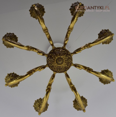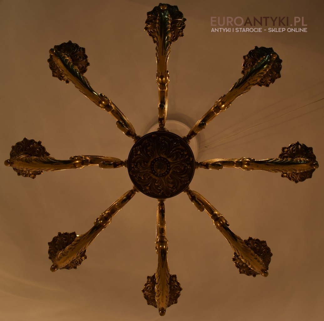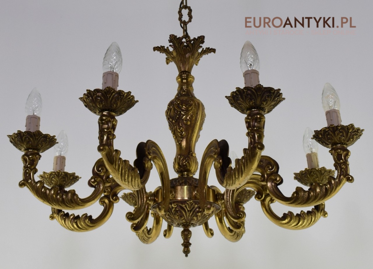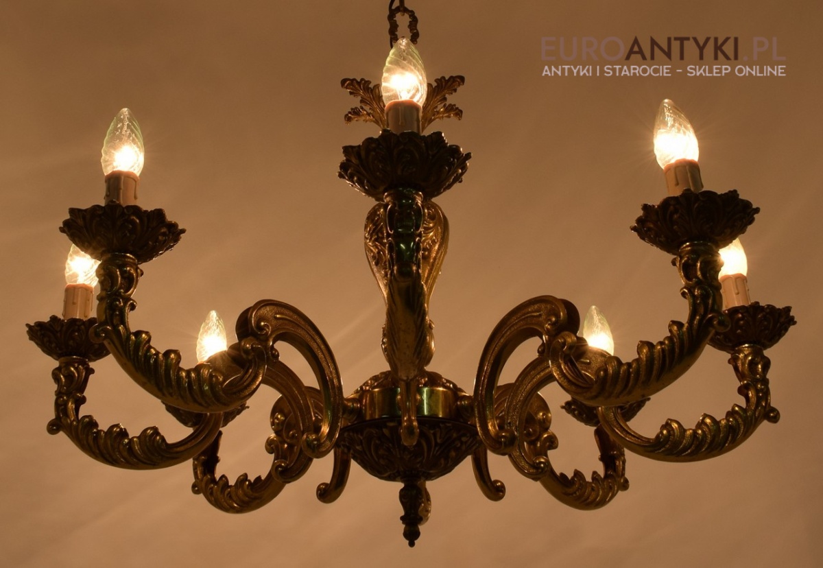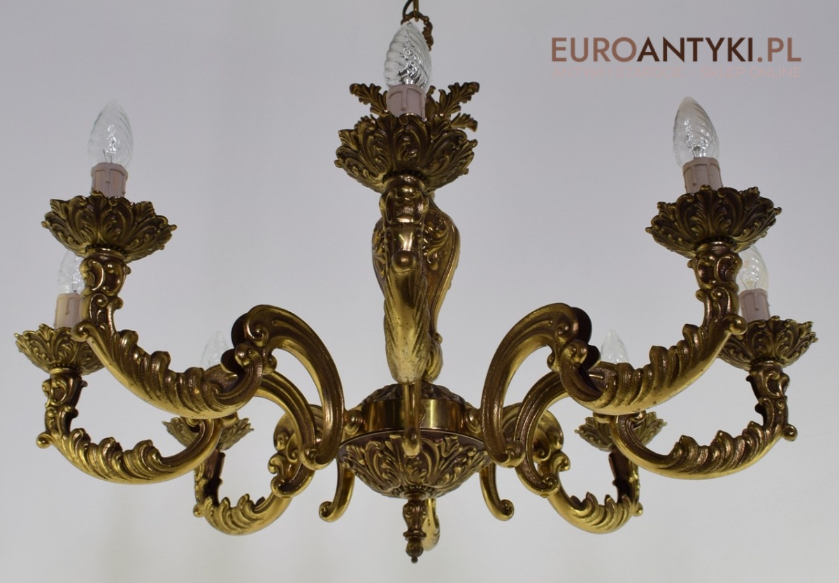 Zabytkowy, rasowy żyrandol barokowy mosiężny z lat 1930. Lampy antyki.