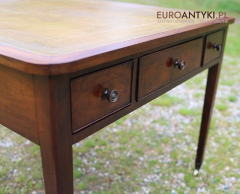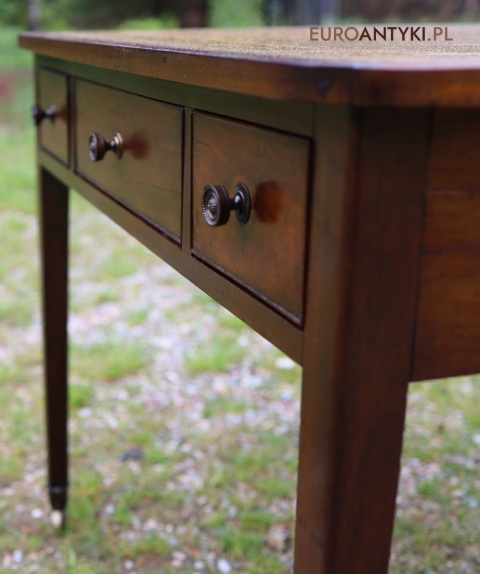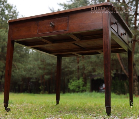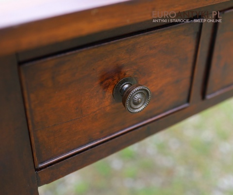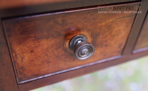 Dzięki szufladom z każdej strony, służył nie tylko do pracy, ale też do przechowywania kart, notatek i drobnych akcesoriów. To doskonały wybór dla każdego miłośnika retro, antyków i klasycznych wnętrz z duszą.