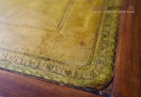 Blat: tłoczona skóra, klasyczny zielony kolor, z piękną patyną