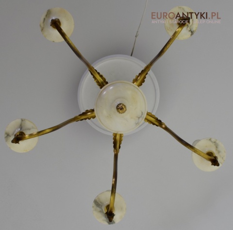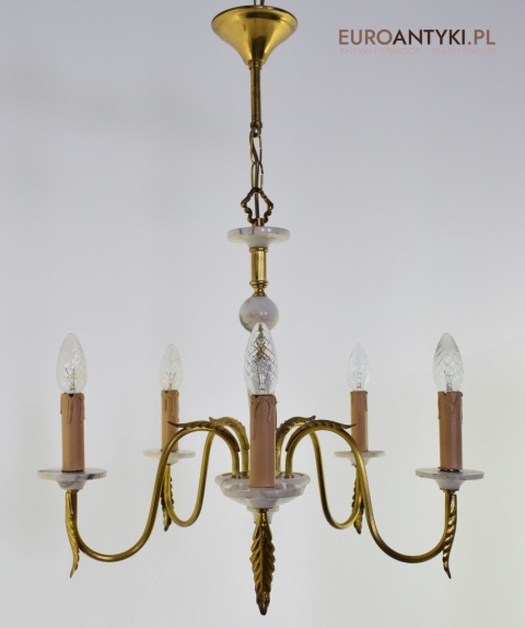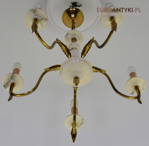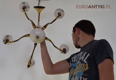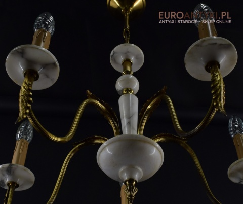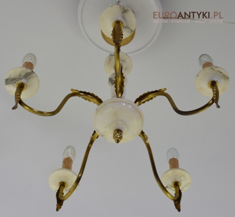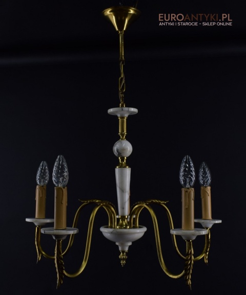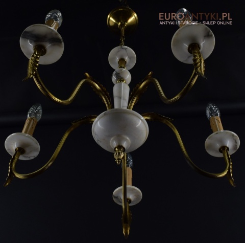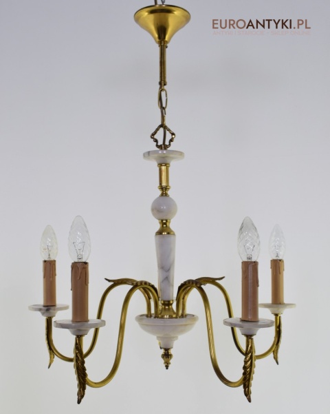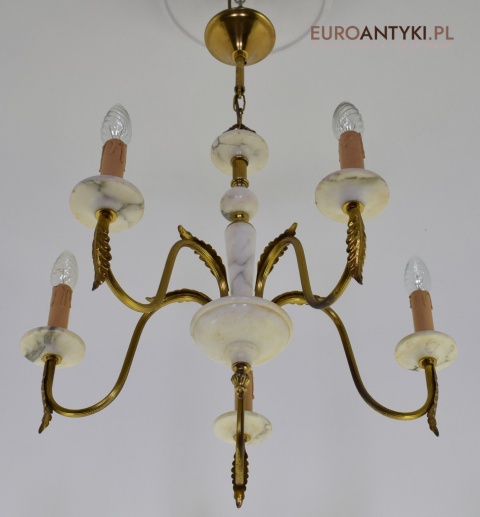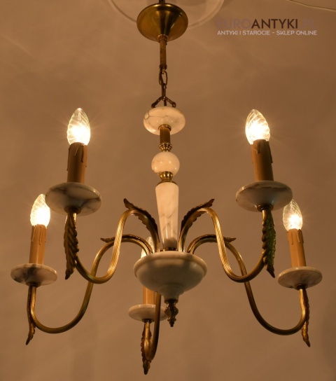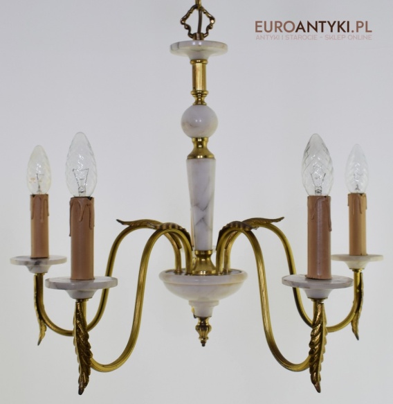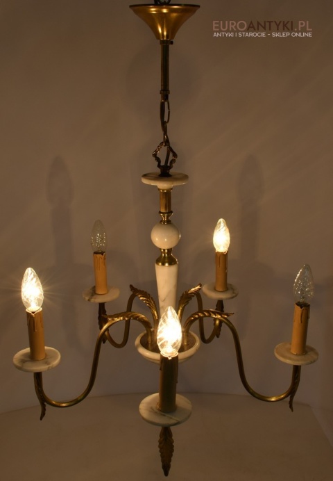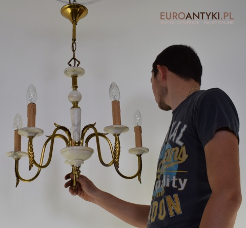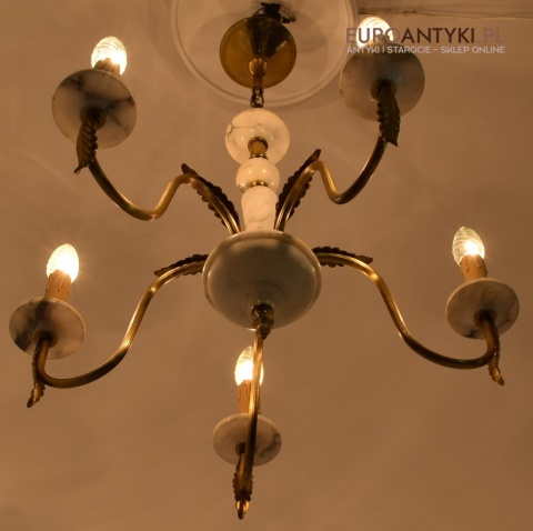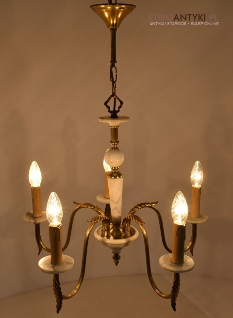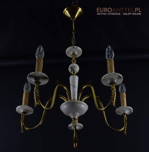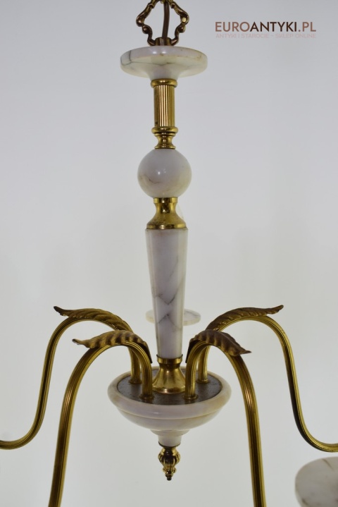 Zabytkowy żyrandol marmurowy mosiężny. Antyki lampy.