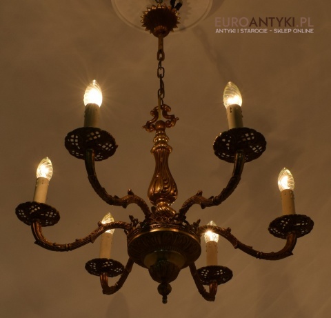 Zabytkowy żyrandol mosiężny do salonu. Unikatowe lampy.