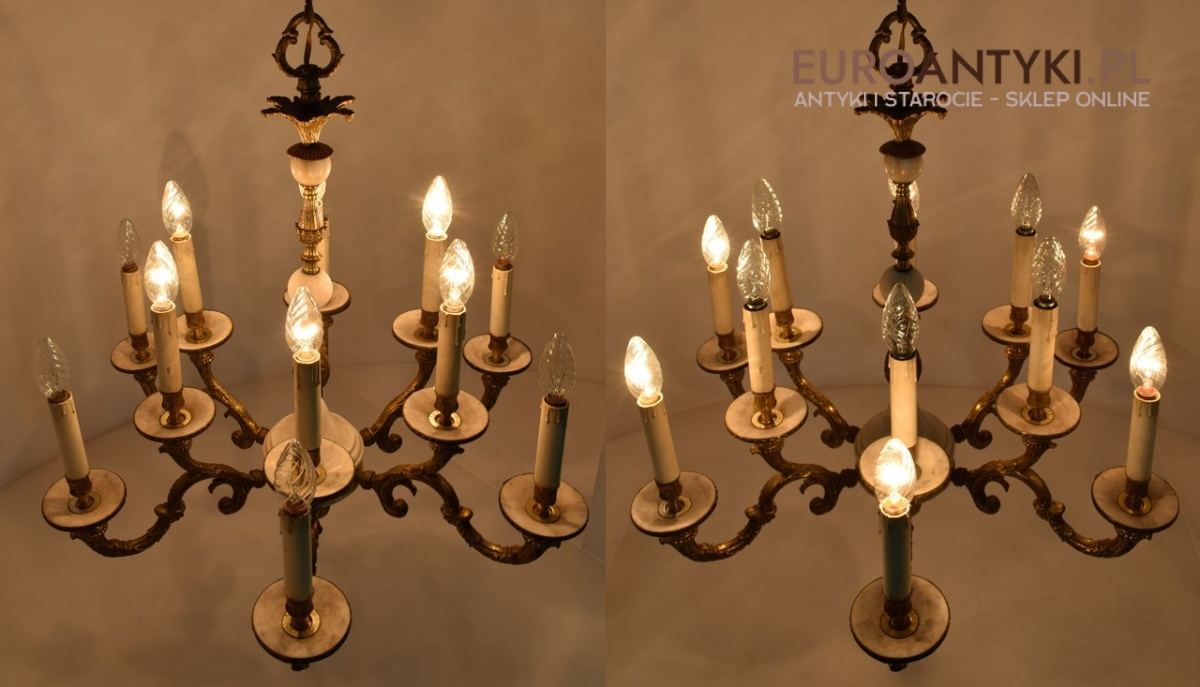 UWAGA! Instalacja elektryczna jest poprowadzona w ten sposób, że można włączyć wszystkie żarowki na raz lub dolną lub górną koronę oddzielnie, co widać na zdjęciach.