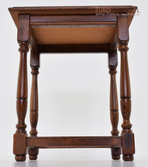 Stoliki te nie wykazują żadnych śladów uszkodzeń takich jak ślady po kornikach czy nieprzyjemne zapachy wilgoci lub dymu papierosowego. Ich powierzchnia została profesjonalnie wyczyszczona i odnowiona, zachowując przy tym naturalne znaki starości, które dodają im charakteru.