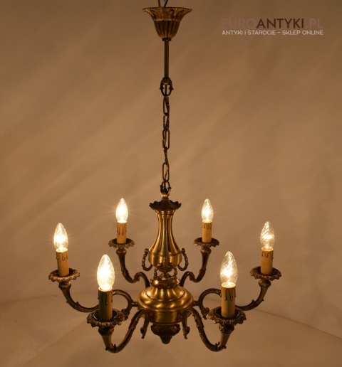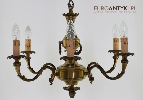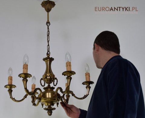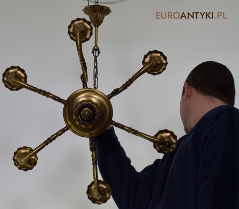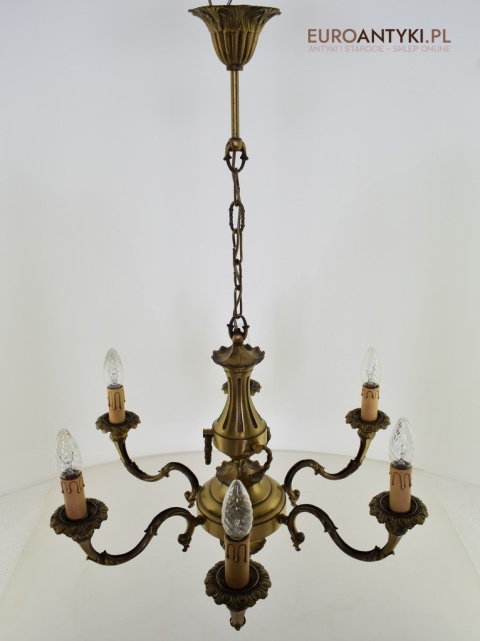 Zjawiskowy mosiężny żyrandol dworski. Unikatowe lampy retro.
