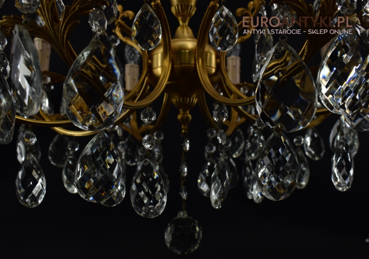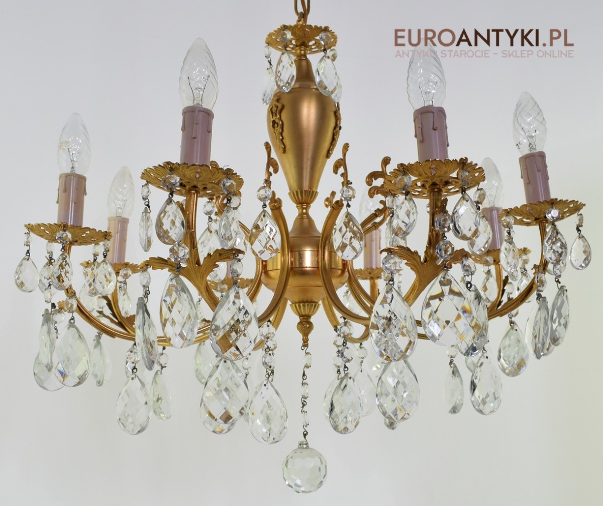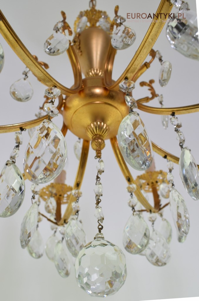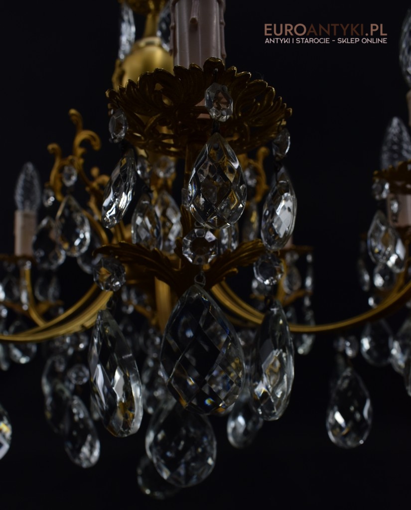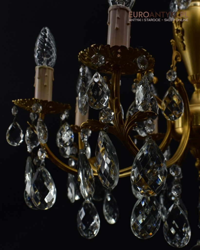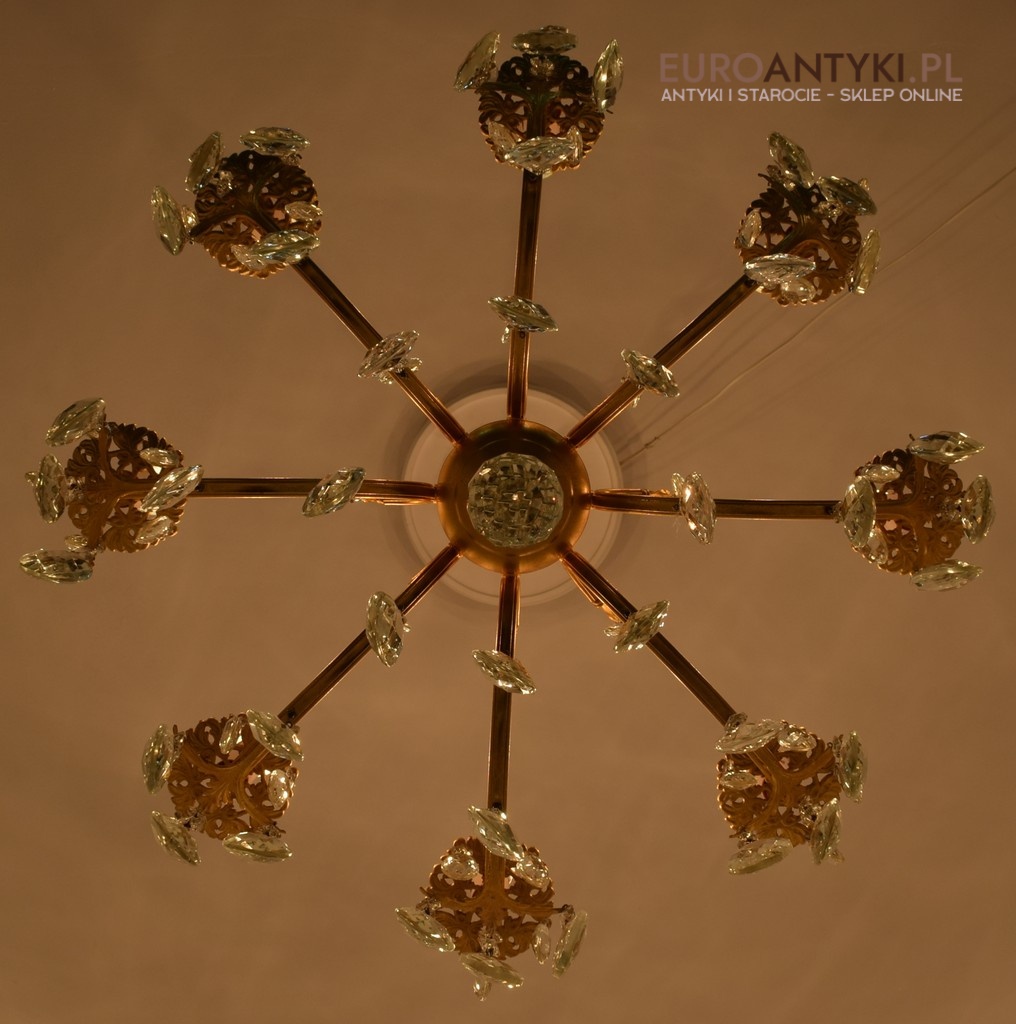 Złoty pałacowy żyrandol kryształowy. Antyczne oświetlenie.