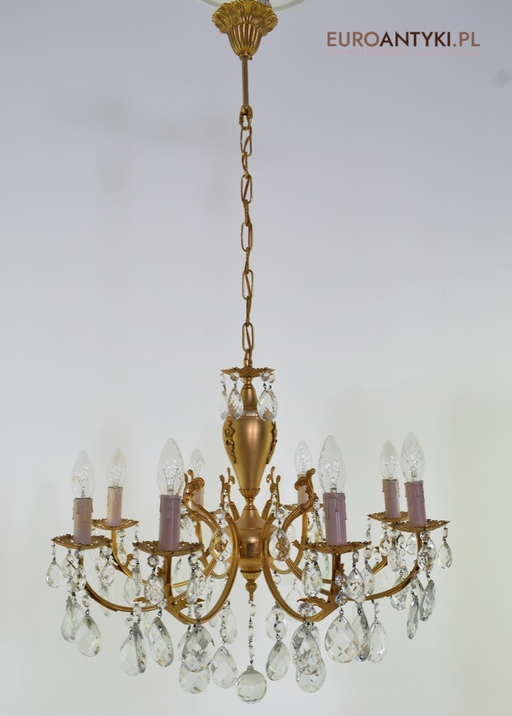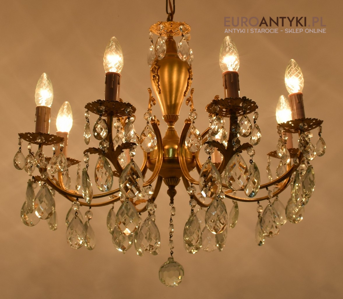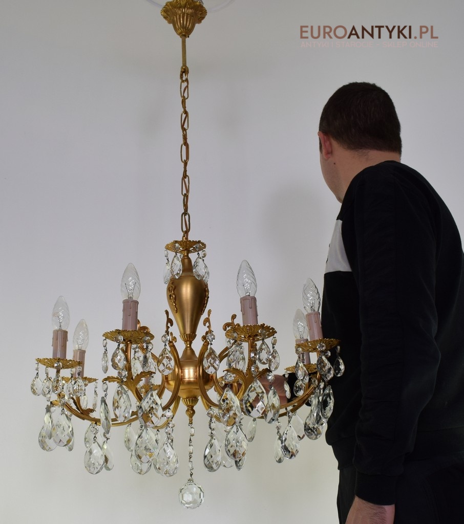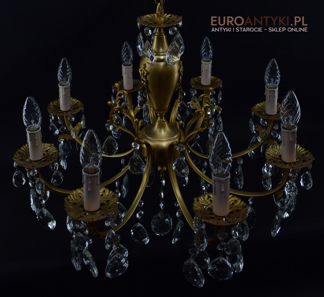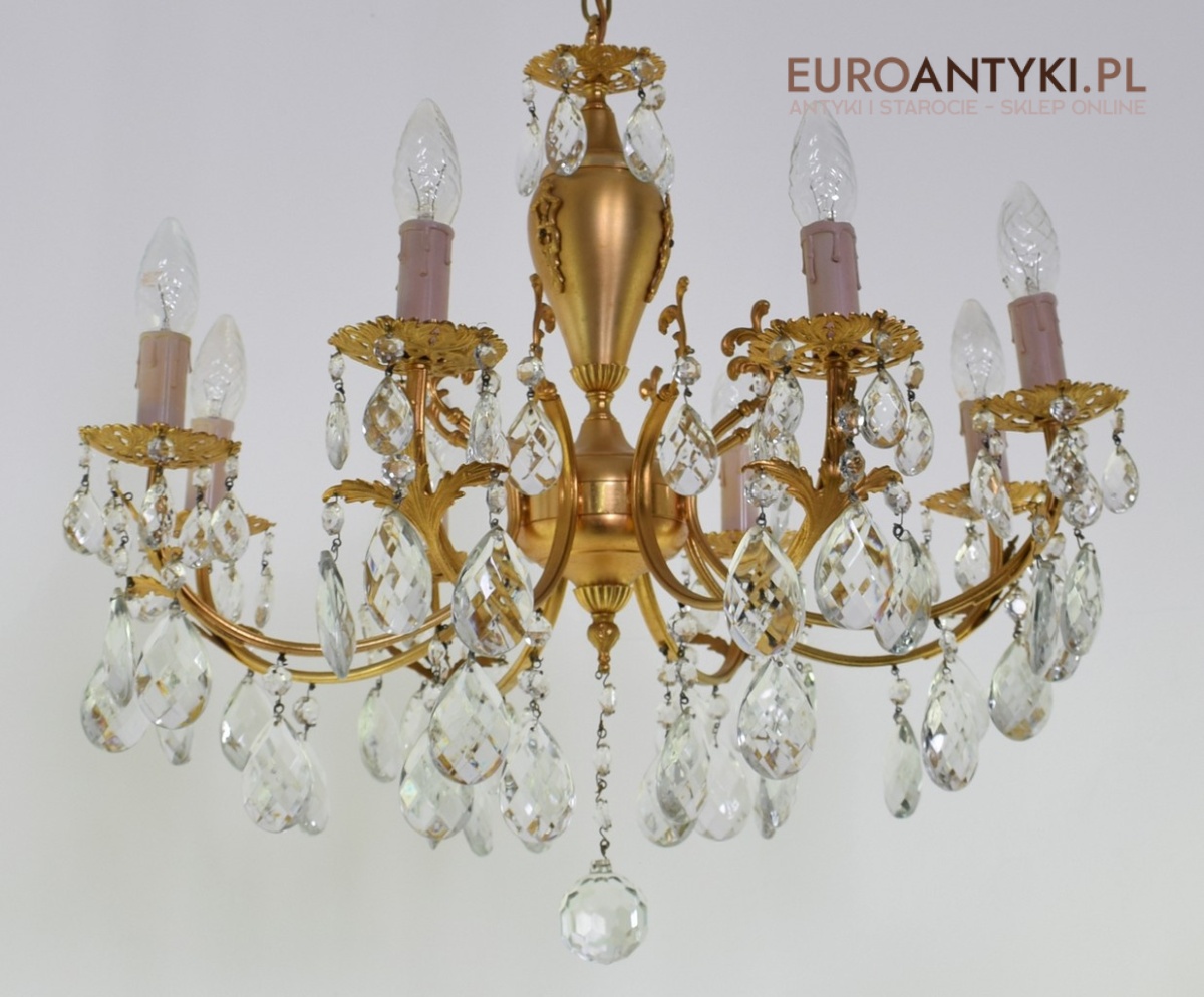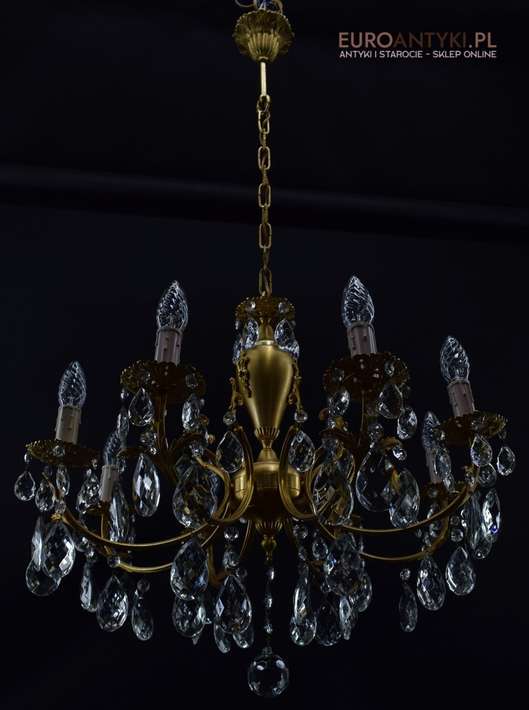 Złoty pałacowy żyrandol kryształowy. Antyczne oświetlenie.