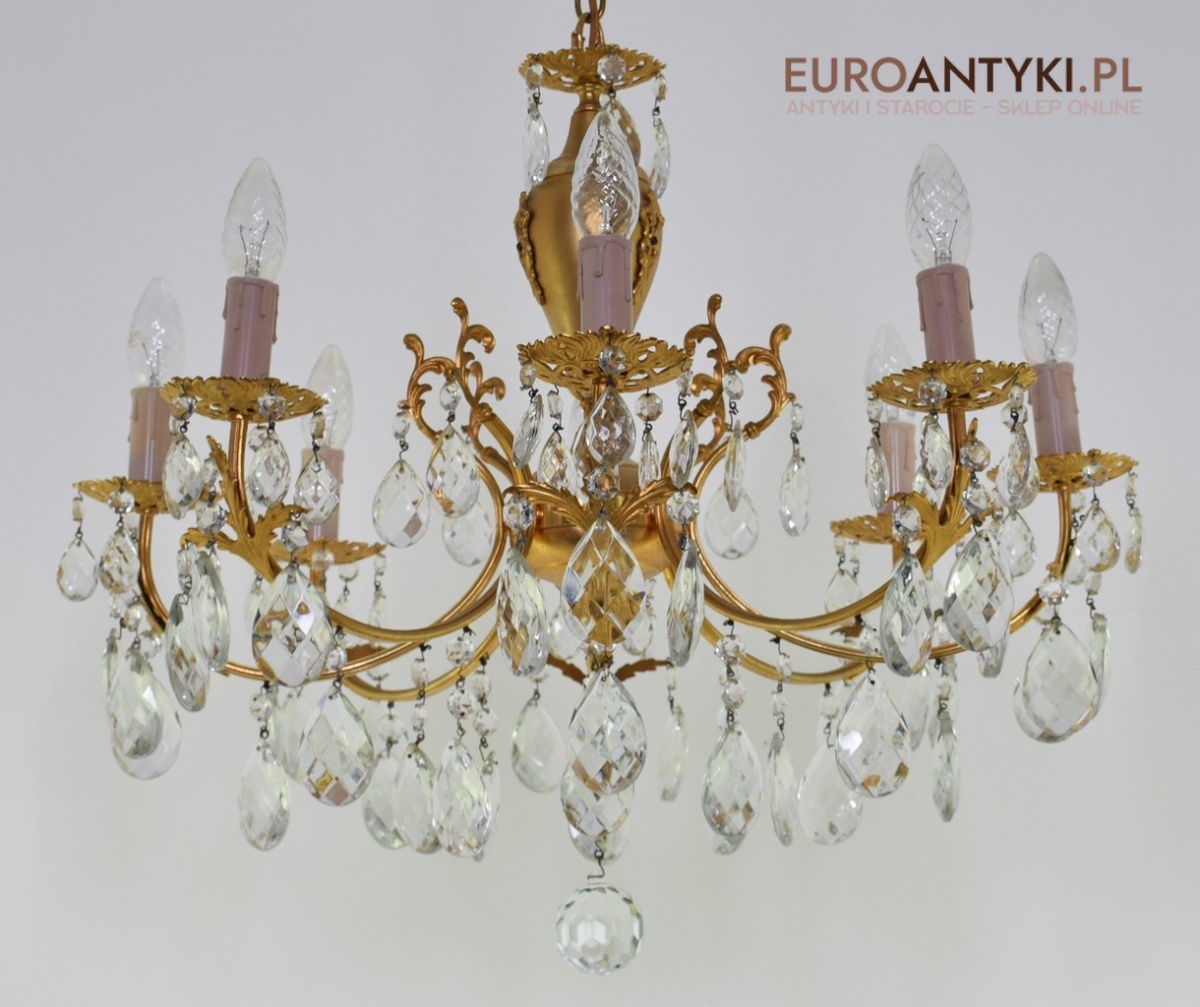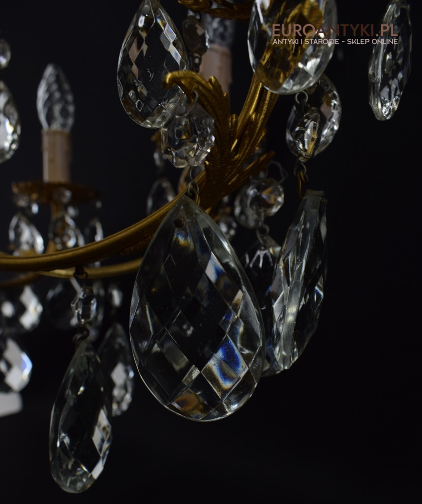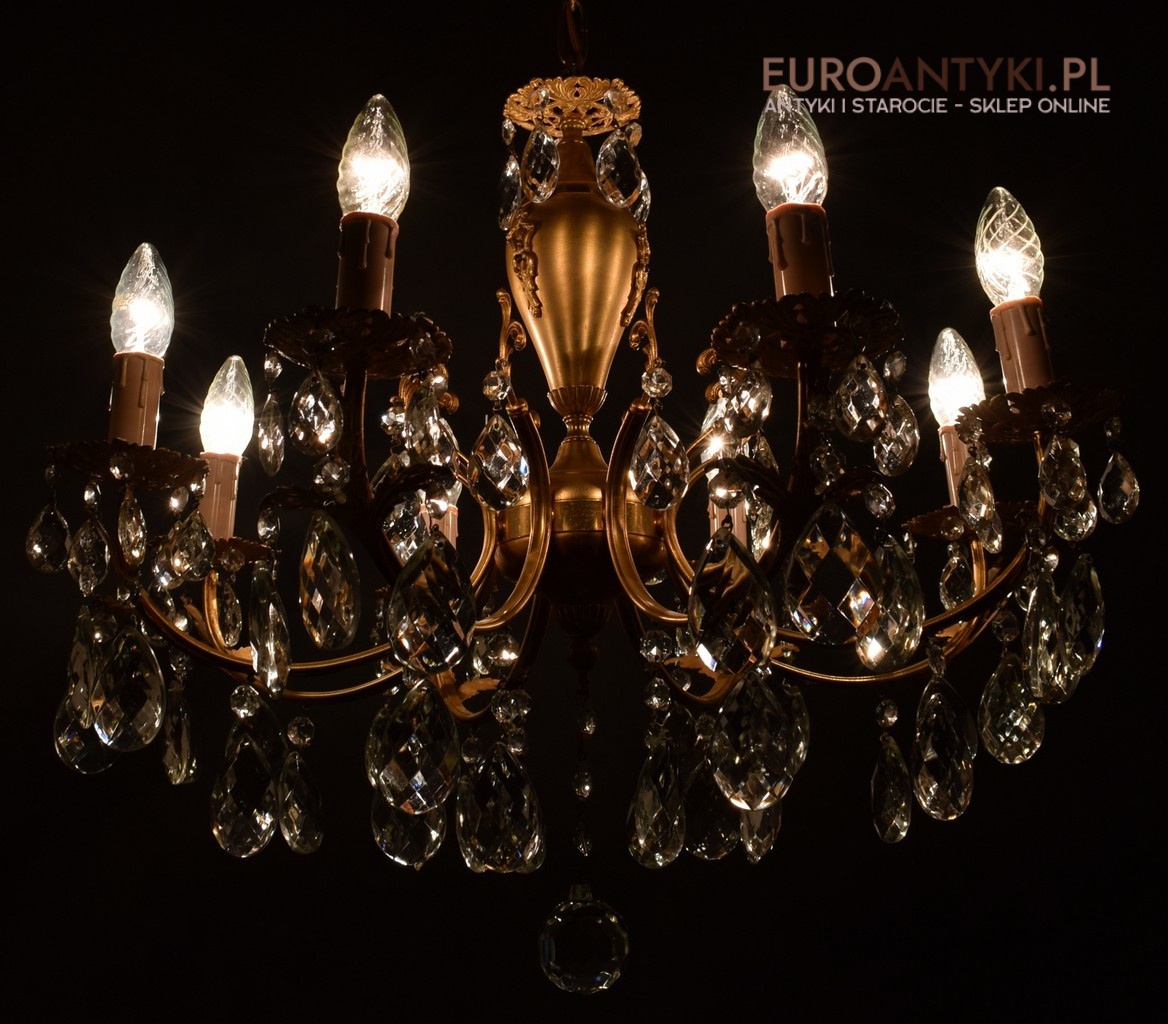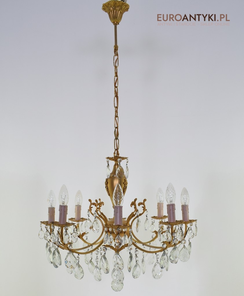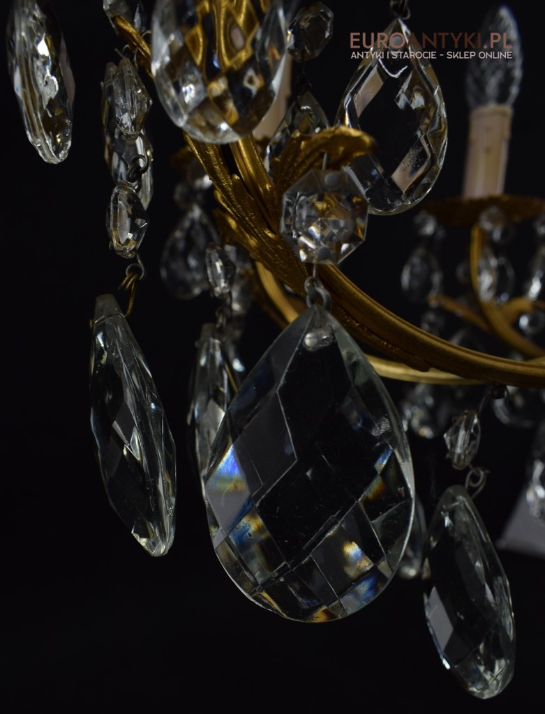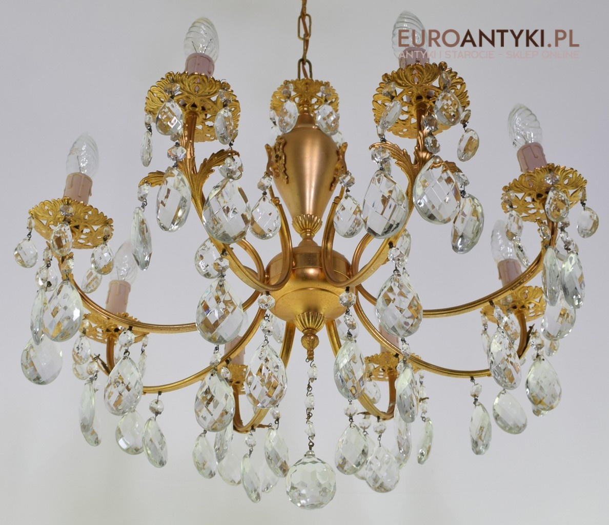 Złoty pałacowy żyrandol kryształowy. Antyczne oświetlenie.