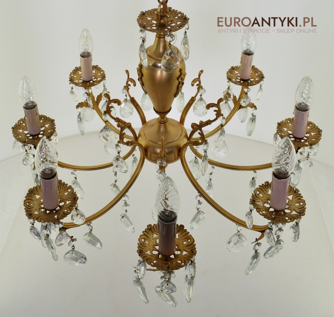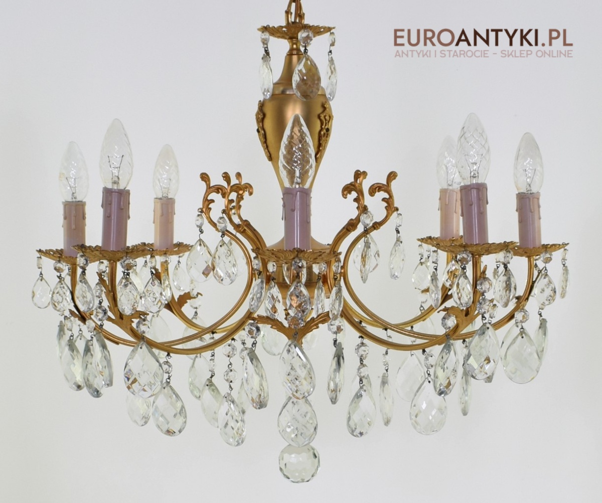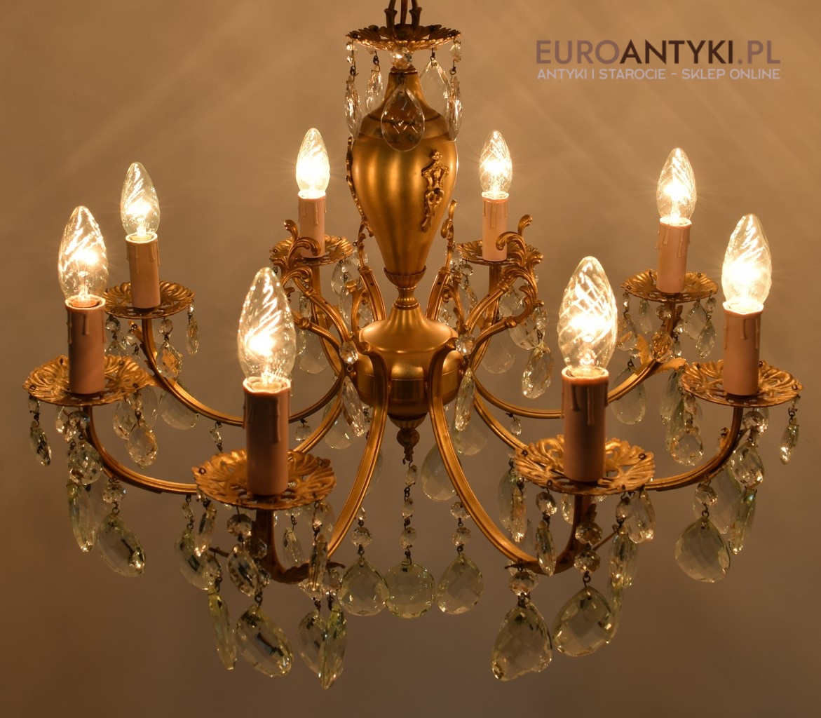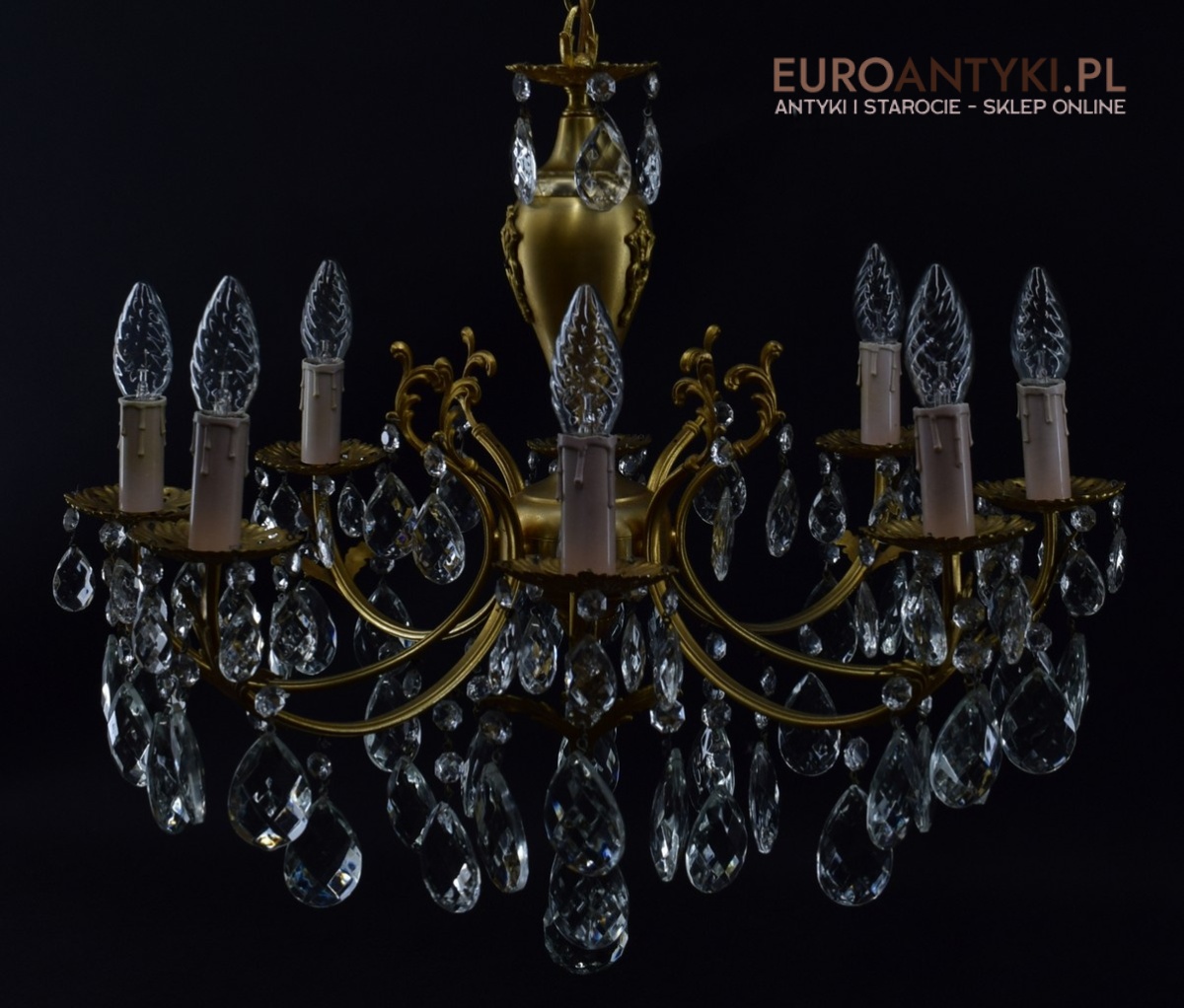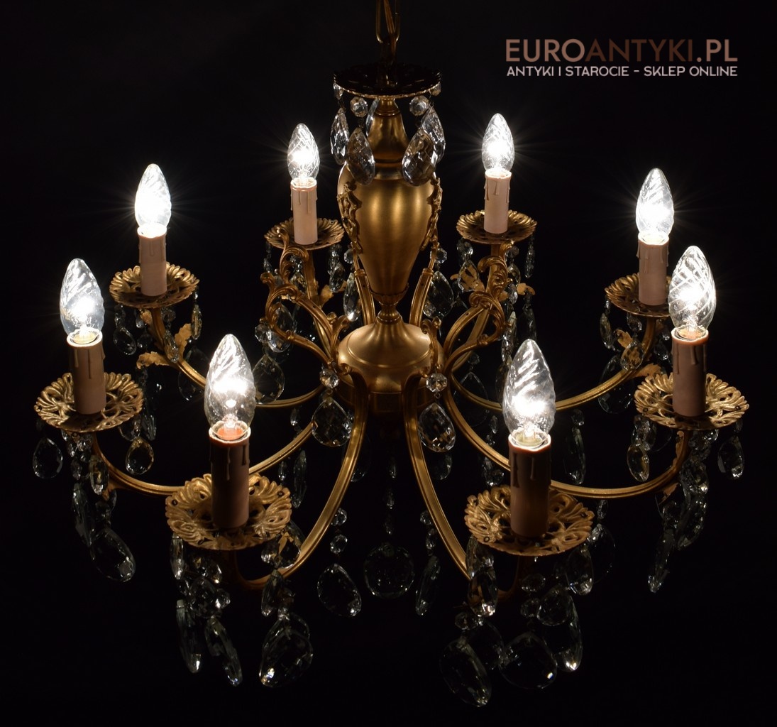 Złoty pałacowy żyrandol kryształowy. Antyczne oświetlenie.