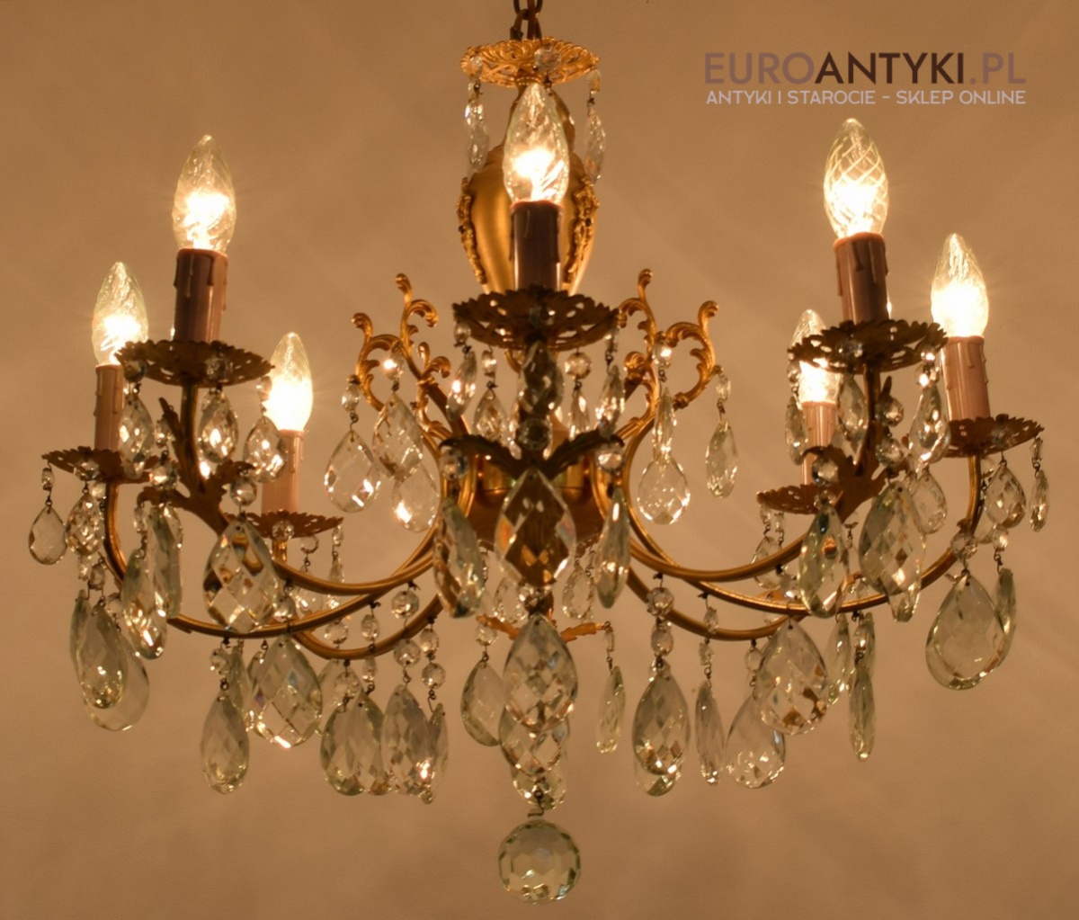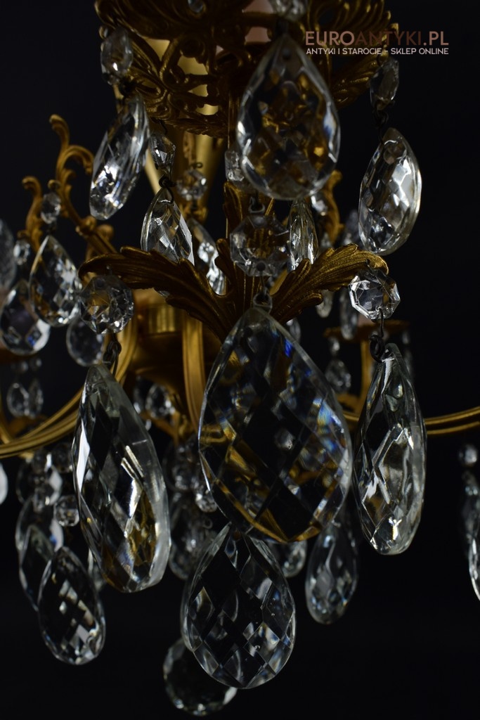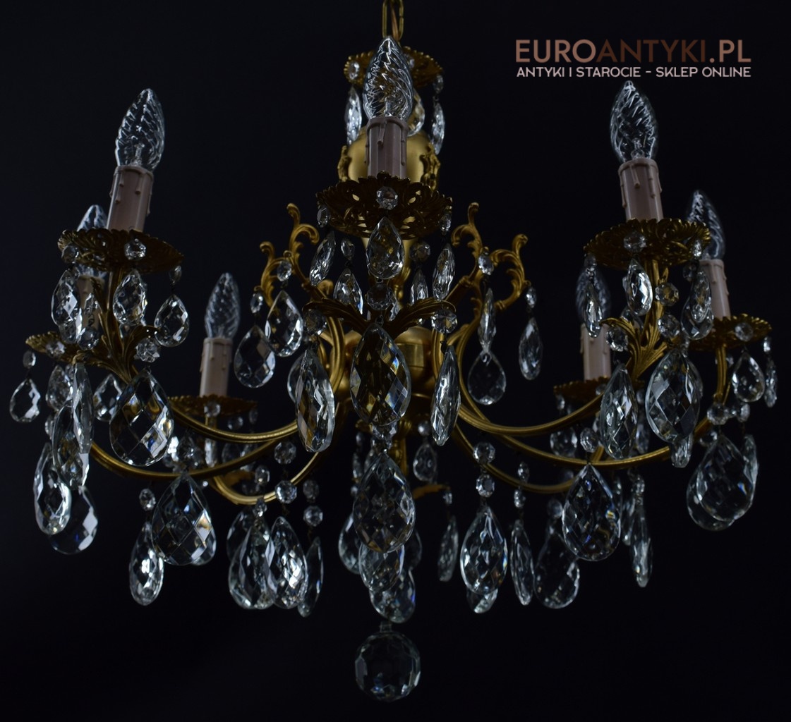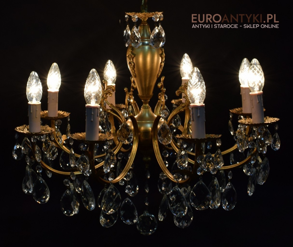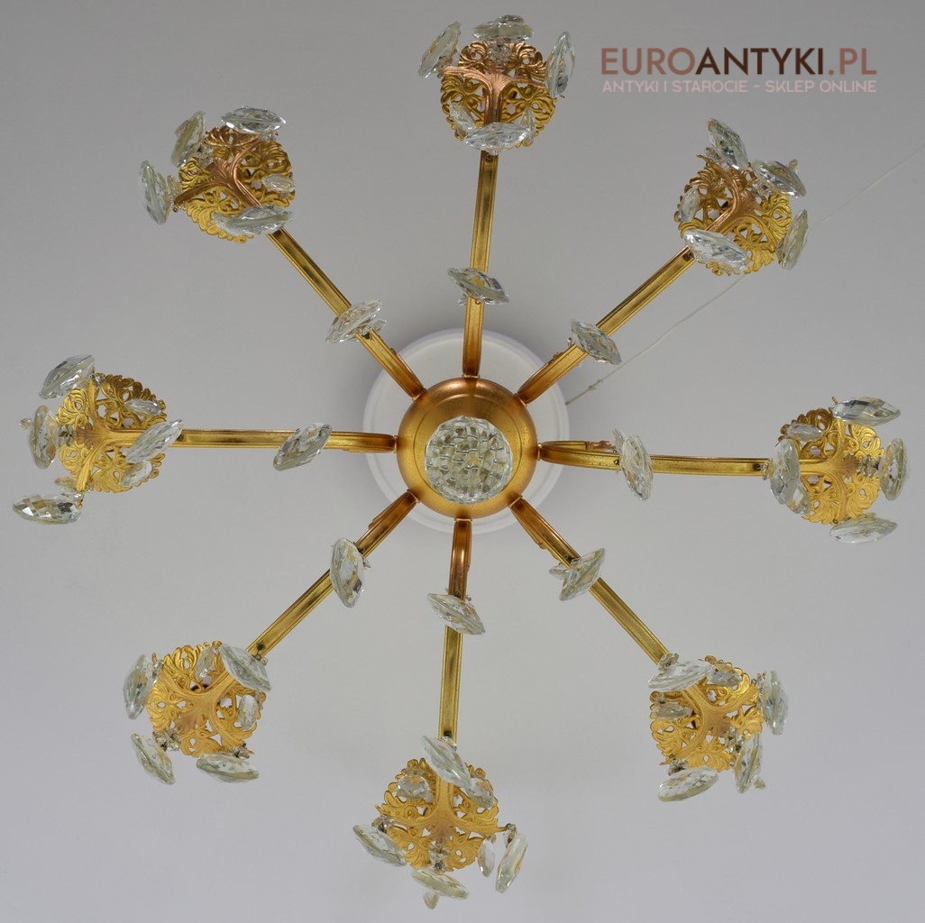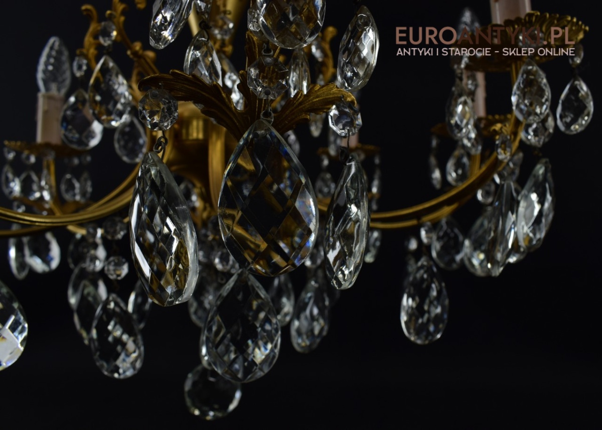 Złoty pałacowy żyrandol kryształowy. Antyczne oświetlenie.