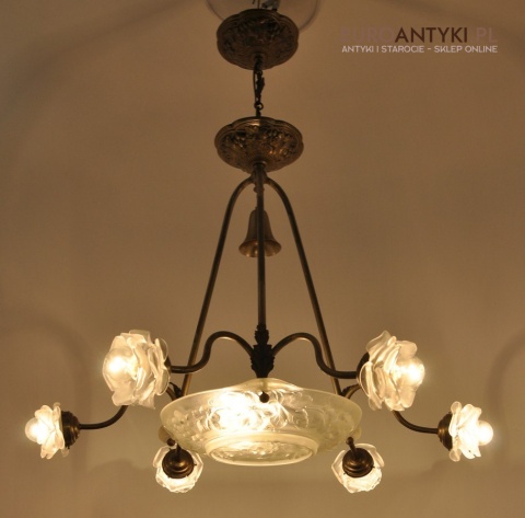 Żyrandol art deco oryginalny unikat do salonu pałacu zamku. Prawdziwy antyk