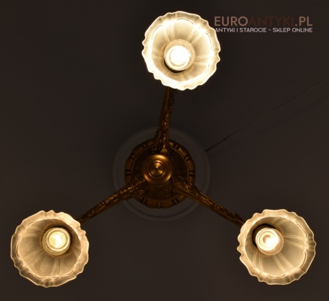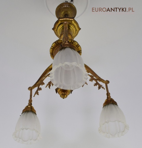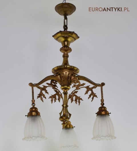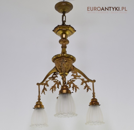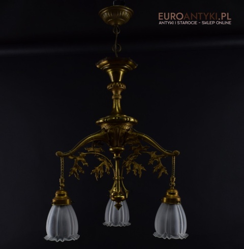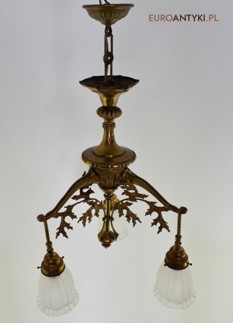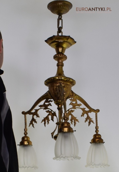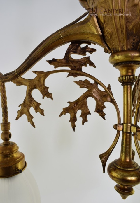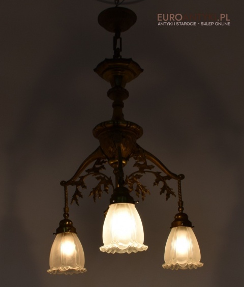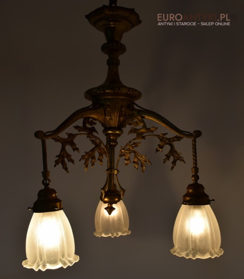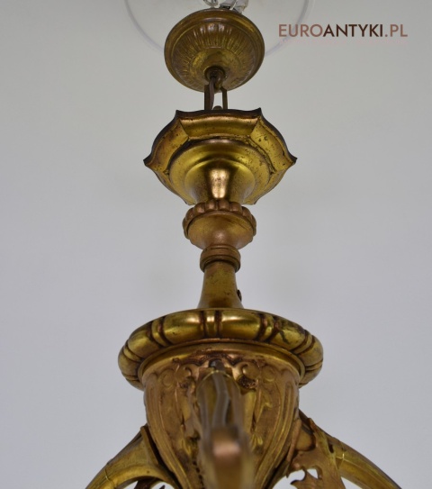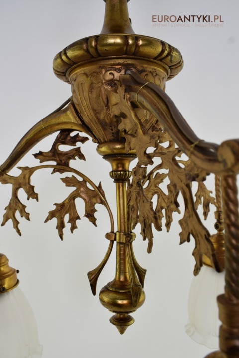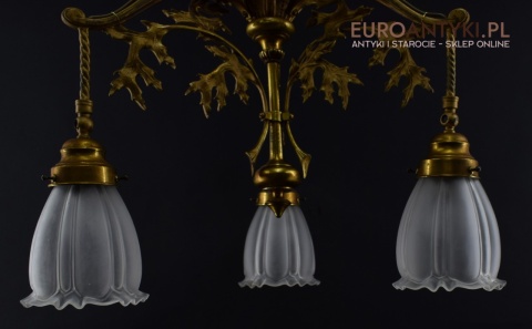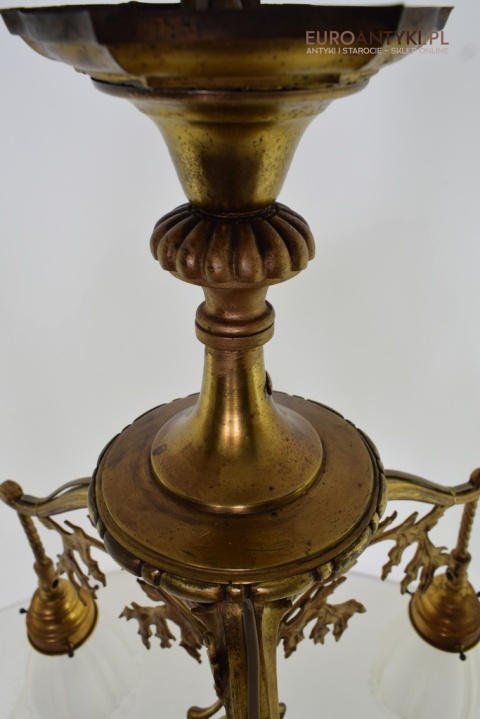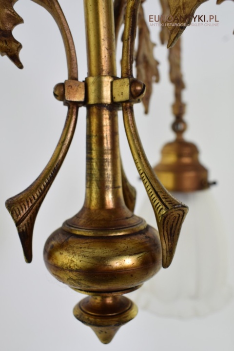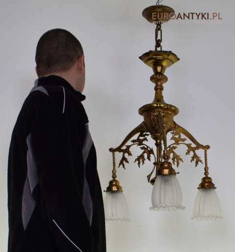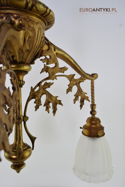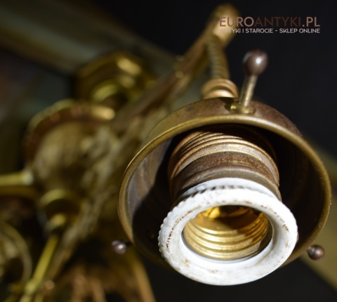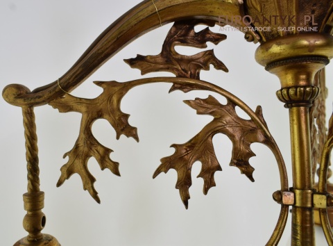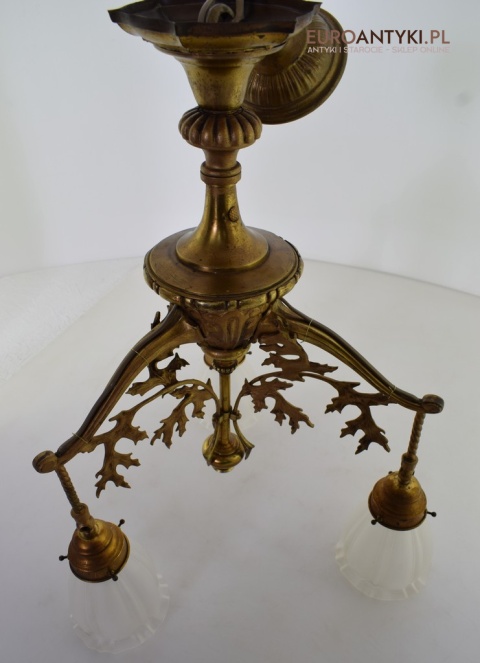 Żyrandol gazowy mosiężny z lat 1900. Prawdziwe antyki.