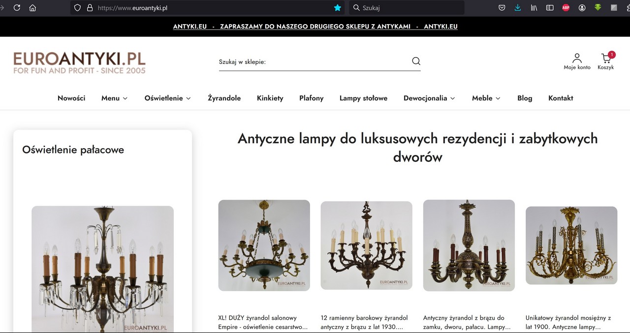 EuroAntyki nieustannie dąży do doskonałości, a ostatnie zmiany są dowodem na nasze zaangażowanie w poprawę doświadczeń zakupowych naszych klientów. Odświeżona strona internetowa, nowe logo i favicon oraz liczne usprawnienia sprawiają, że zakupy w EuroAntyki są teraz jeszcze łatwiejsze i bardziej przyjemne. Zapraszamy do odwiedzenia naszej strony i odkrycia na nowo magii antycznego oświetlenia oraz innych wyjątkowych produktów!