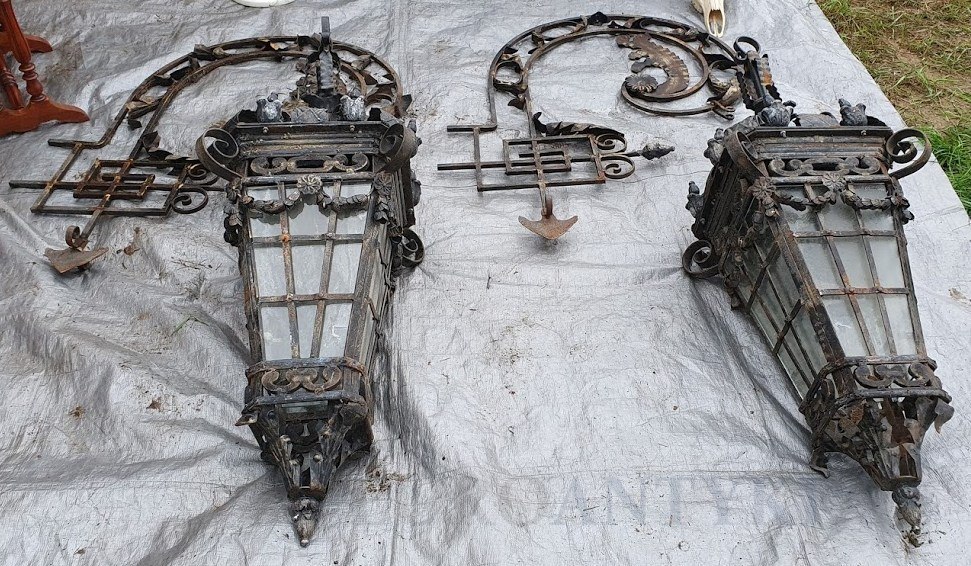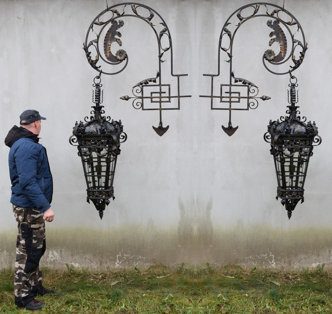 Potężne muzealne lampiony zewnętrzne do zamku, pałacu. Prawdziwe antyki.