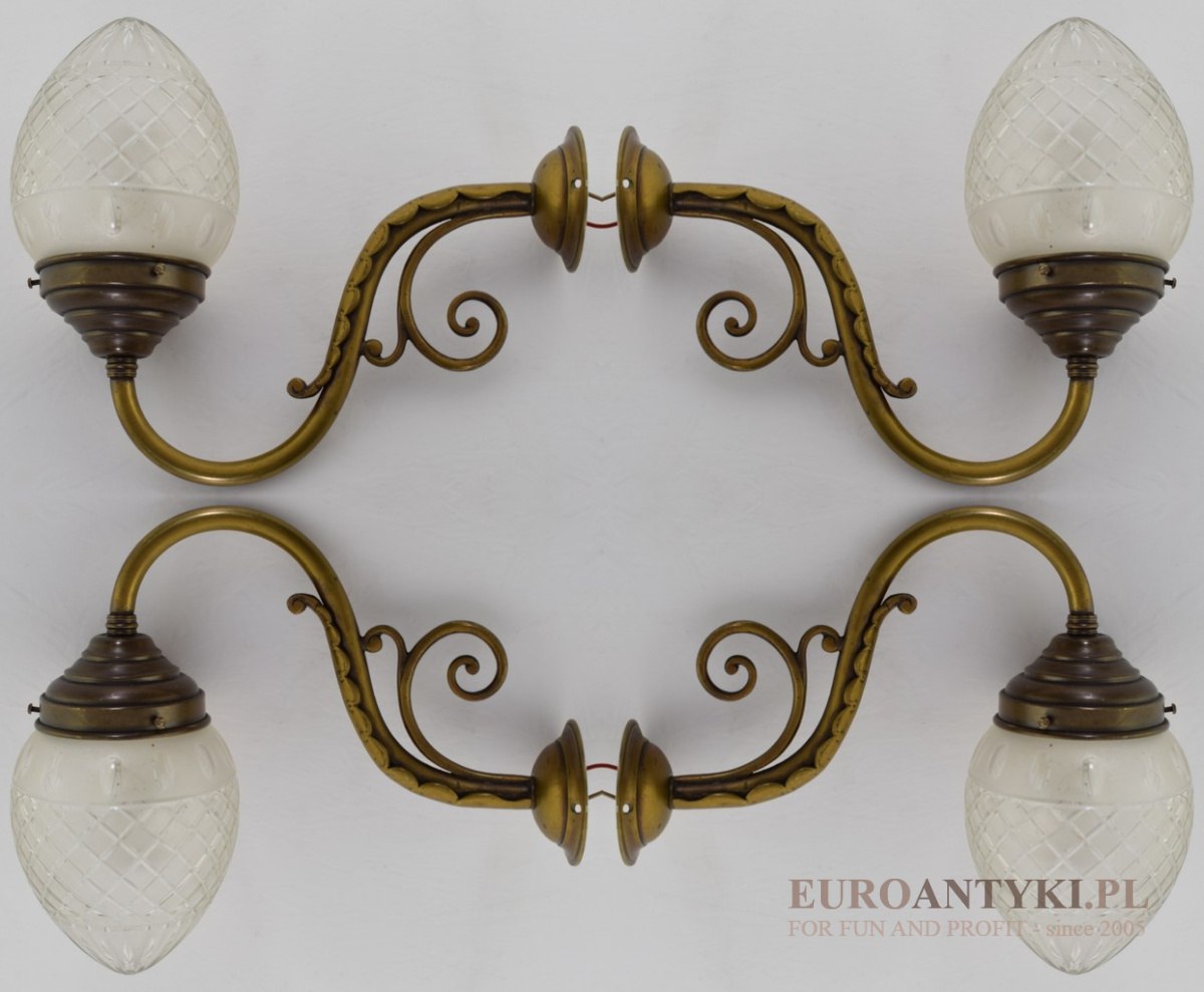 Art Nouveau - Secesja - Jugendstil: Oryginalne Kinkiety ze Szlifowanymi Kloszami Kryształowymi