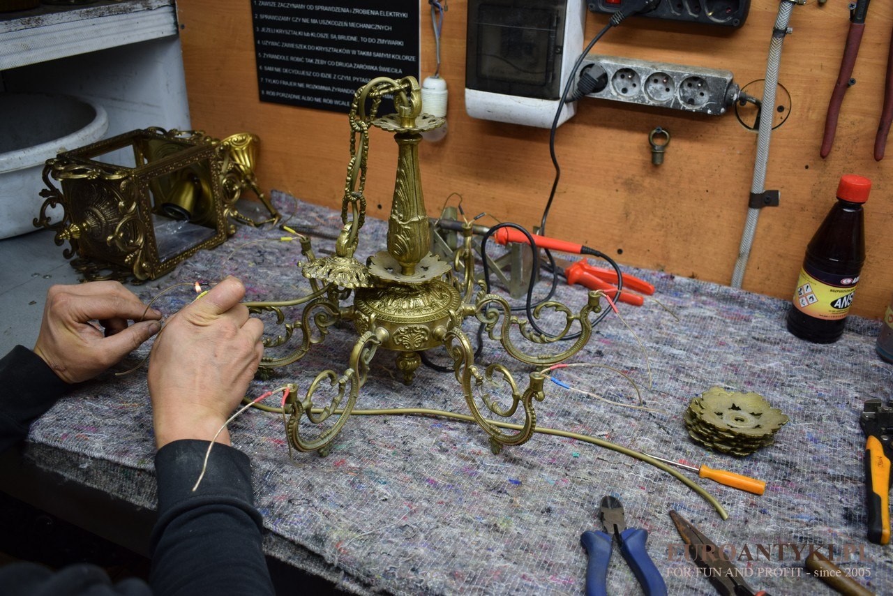 Nie wszystkie antyczne żyrandole są wykonane z tych samych materiałów. Mosiądz, srebro, kryształ czy szkło - każdy z tych materiałów wymaga innego podejścia i specjalistycznych narzędzi.