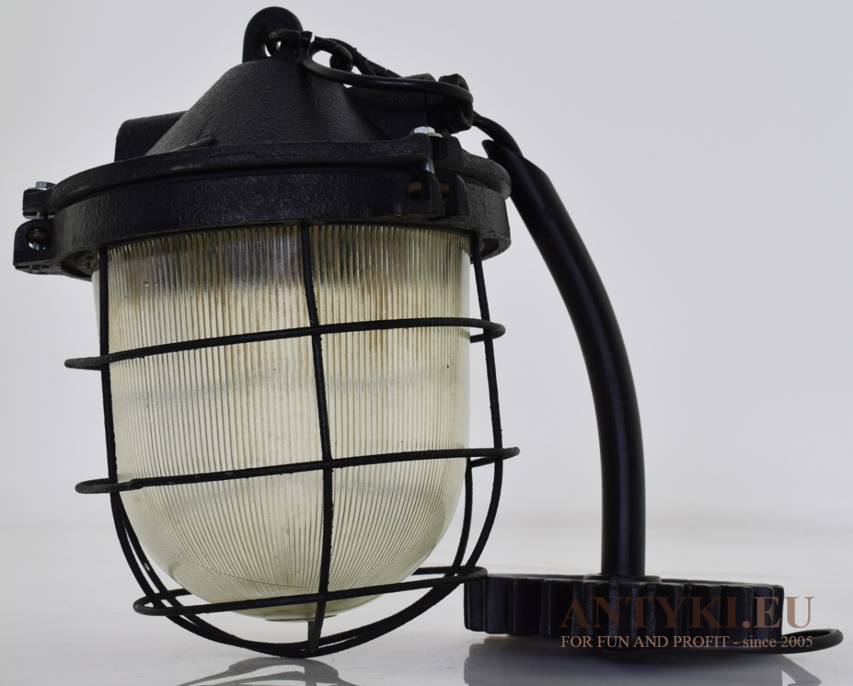 Przykład żeliwnej lampy przemysłowej - fabrycznej z połowy XX wieku: