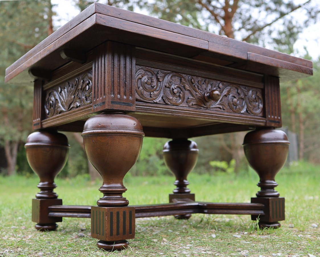 ☕ Stolik kawowy w stylu neorenesansowym z rozkładanym blatem i rzeźbioną szufladą to dziś nie tylko element użytkowy, ale i dekoracyjny, który opowiada swoją własną historię.