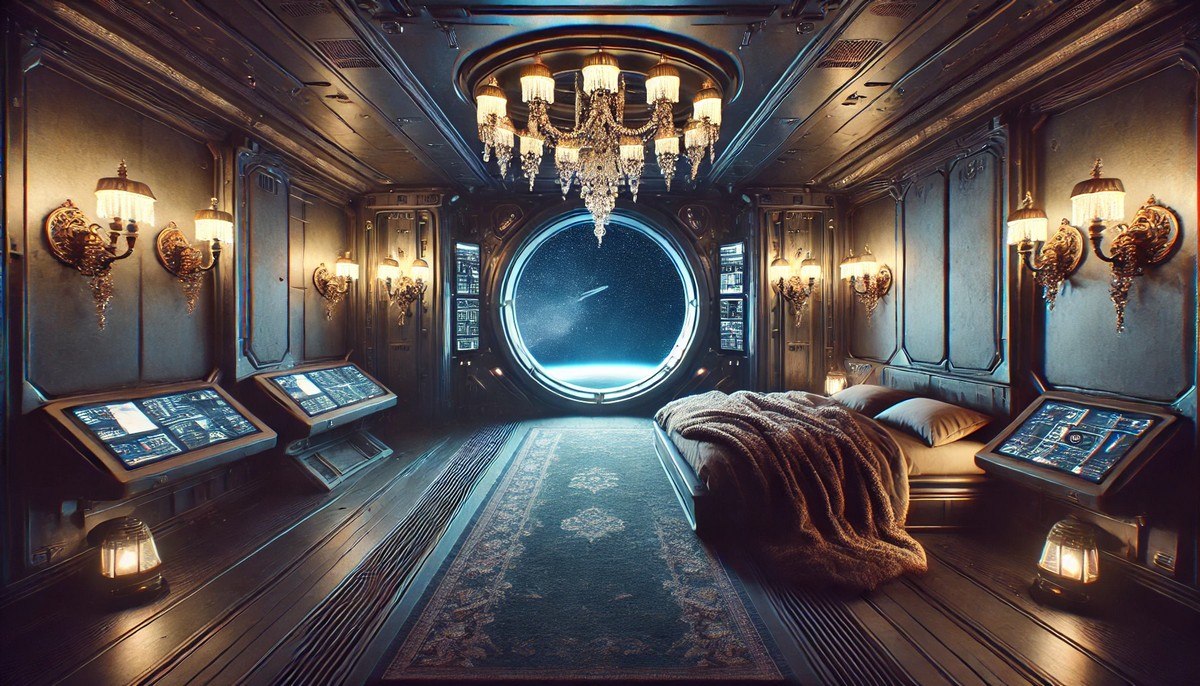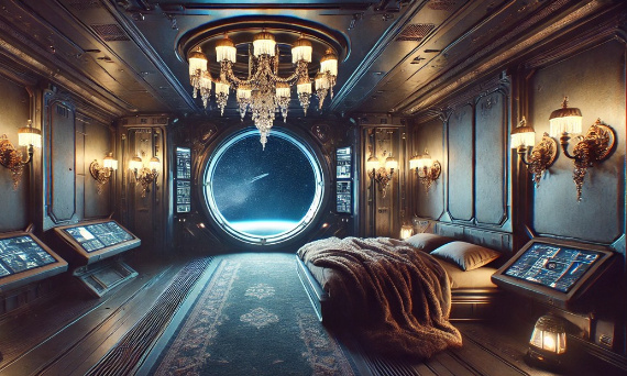 Zastosowanie antyków w nowoczesnych wnętrzach, szczególnie w tak wyjątkowych jak statki kosmiczne, nadaje im duszy i charakteru. Wśród zimnych paneli, futurystycznych komputerów i przeszklonych otworów na kosmos, antyczne oświetlenie emanuje ciepłym, miękkim światłem, tworząc atmosferę sprzyjającą refleksji i relaksowi.