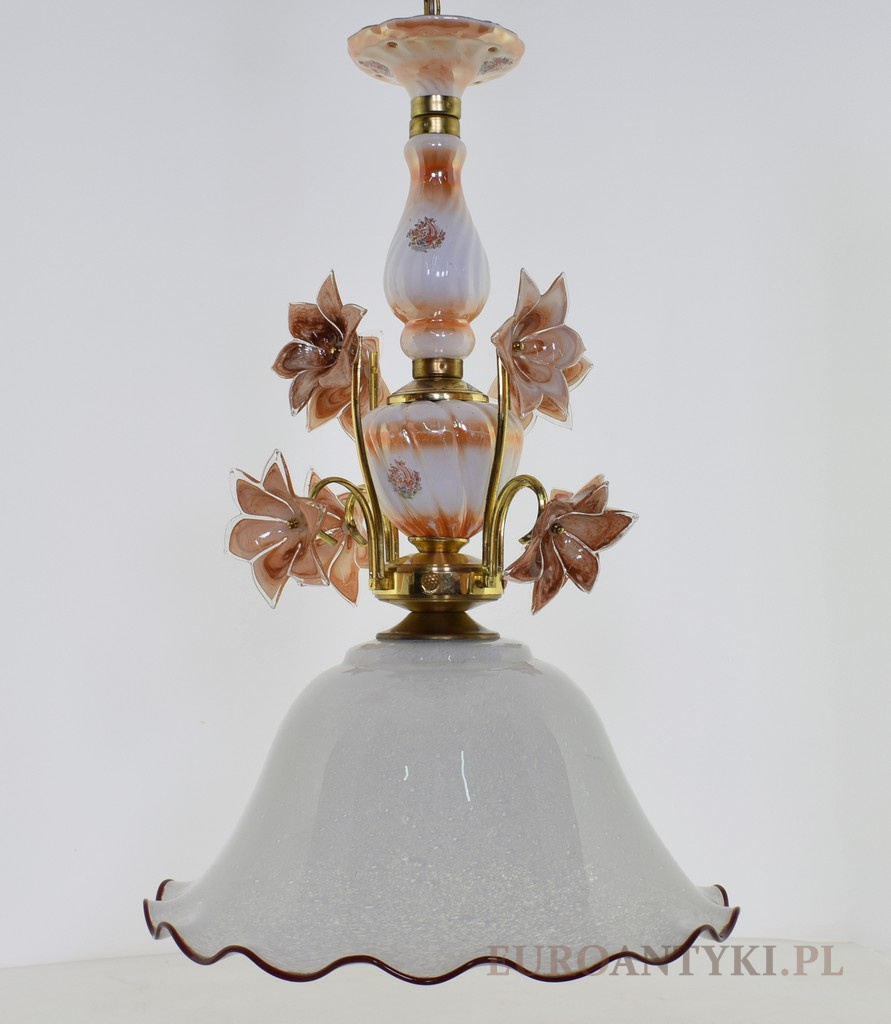 Stara lampa na stoliku, w kącie sypialni swym blaskiem rządzi. Metalowa rama z cienkich prętów, w kloszach delikatny, miękki światłospad.
