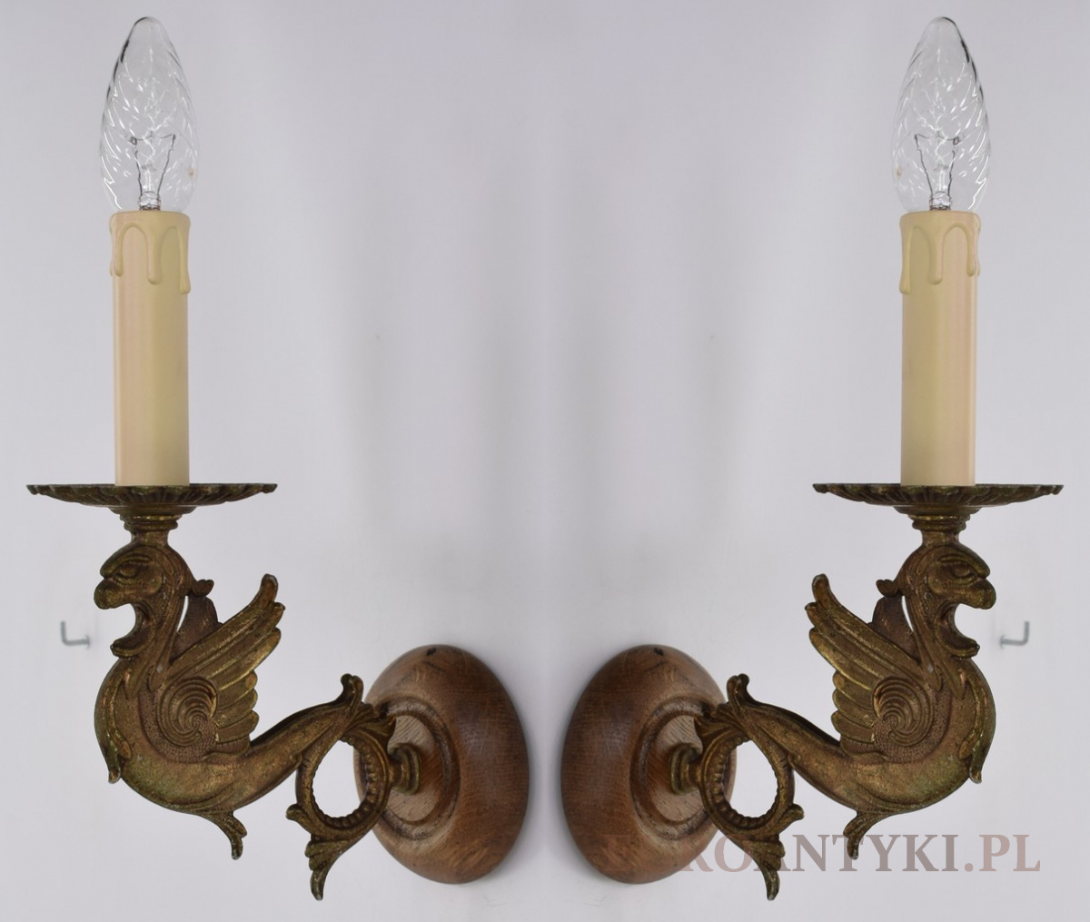 Stare gabinetowe kinkiety mosiężne w kształcie smoków