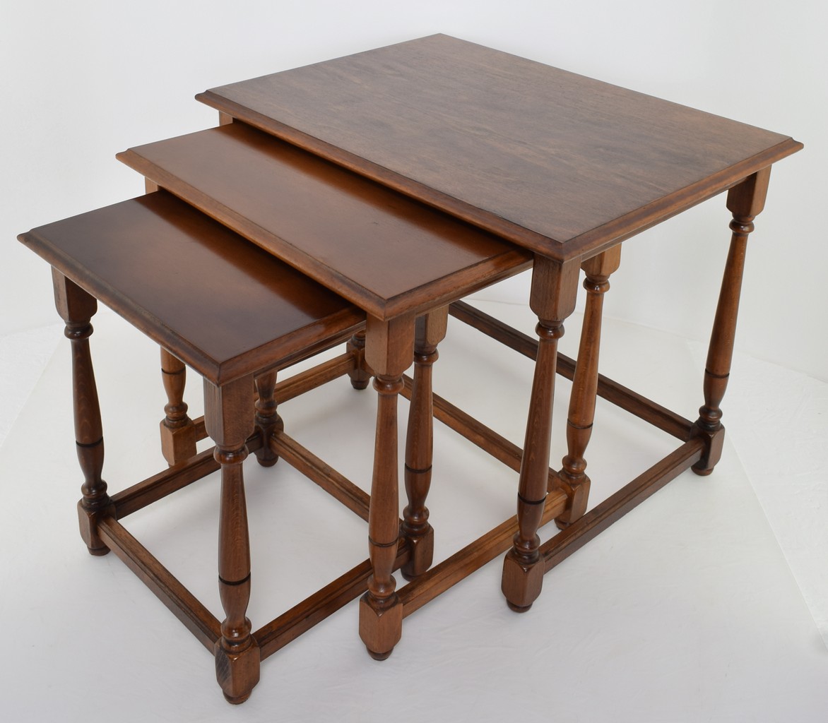Zestaw stolików rozkładanych: Ponieważ stoliki są różnej wielkości, można je łatwo schować jeden pod drugim, oszczędzając miejsce, gdy nie są używane, a szybko rozstawić w razie potrzeby podczas spotkań z gośćmi.
